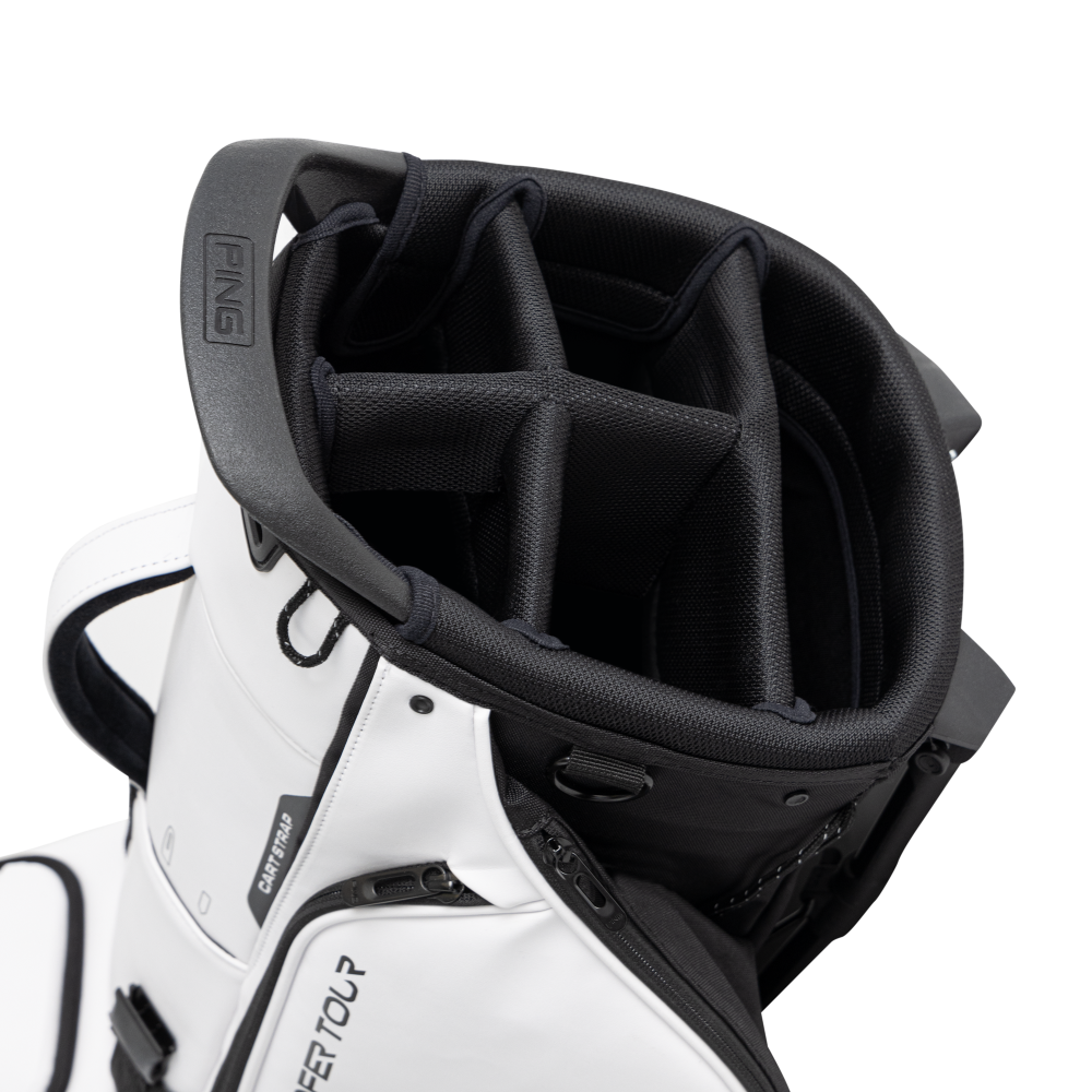 Grâce à ses 5 compartiments, le Ping Hoofer 244 permet un rangement optimal de vos clubs, évitant tout enchevêtrement et facilitant l’accès à chaque club pendant votre partie.