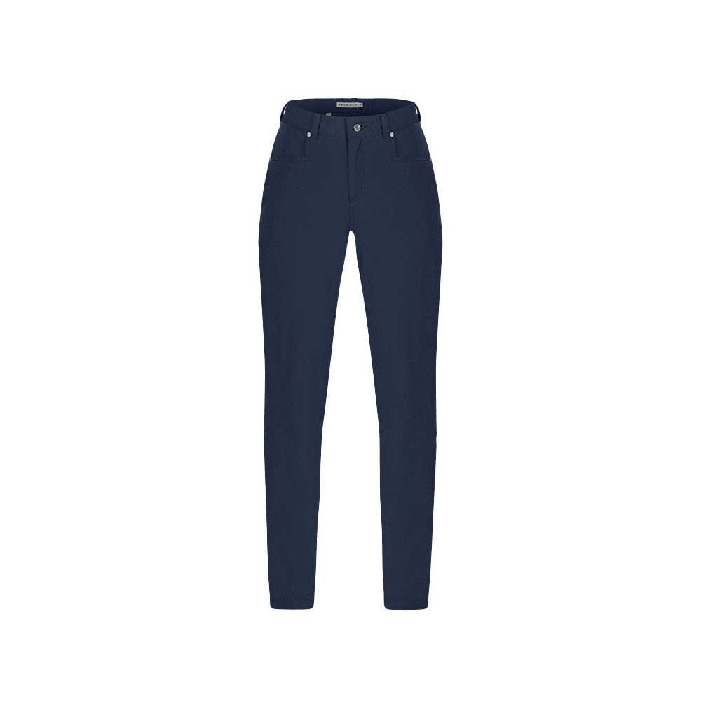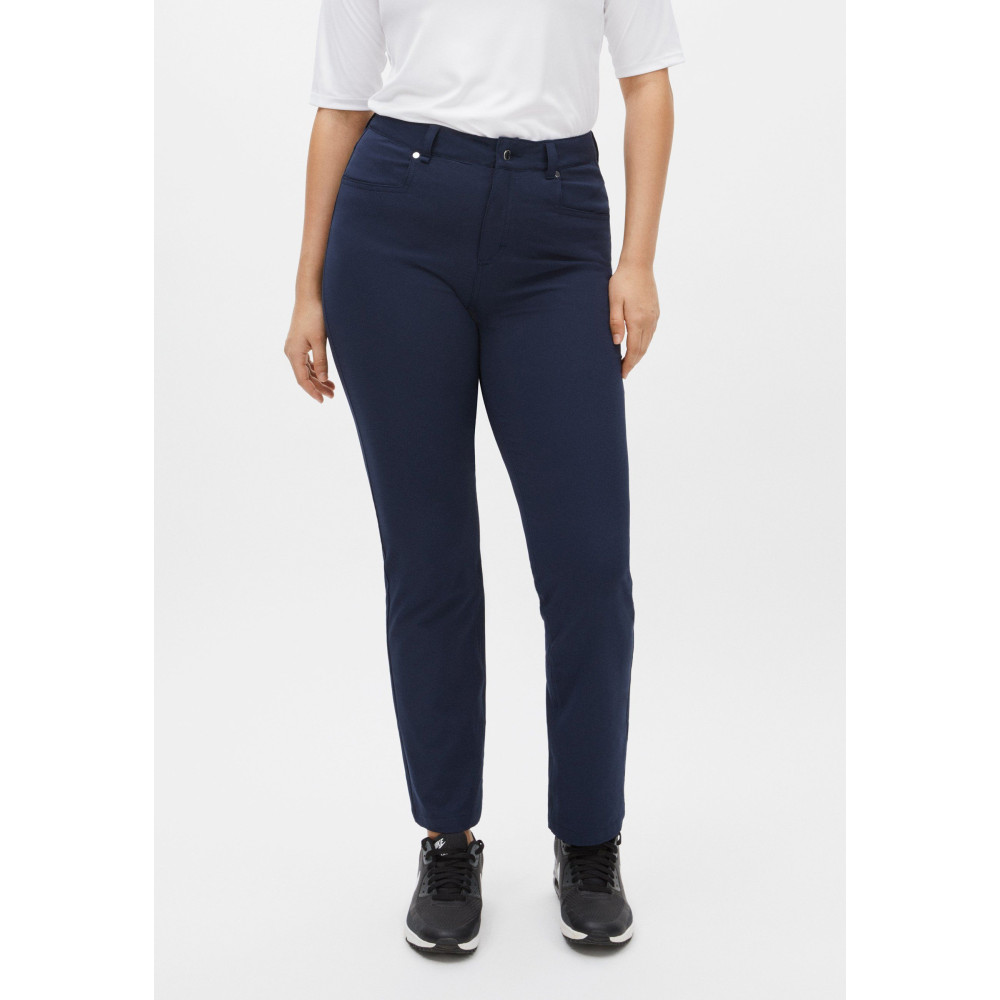 Le pantalon confort Chie est confectionné en polyester recyclé et en élasthanne doux, offrant une extensibilité flexible dans quatre directions. Il est également doté de fonctions de séchage rapide et d'infroissabilité. Sa coupe classique à jambes fines présente un entrejambe de 76 cm en taille 40.