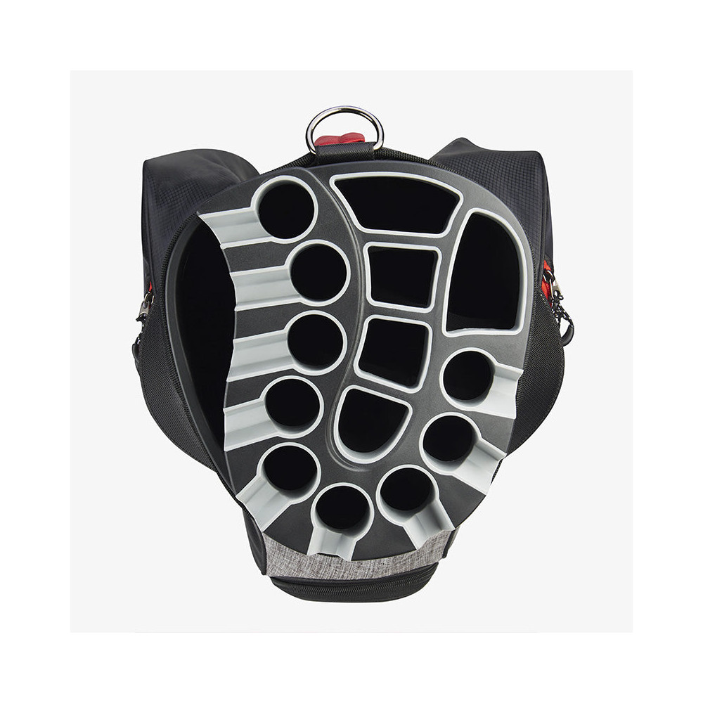 Le dessus de ce sac de golf Wilson ILock permet de sécuriser chaque club dans sa propre section pour une protection accrue. Les multiples poches permettent de ranger le matériel et les accessoires.