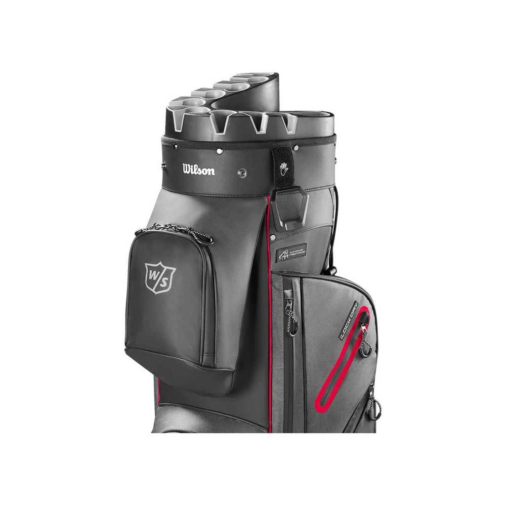 Le sac de golf chariot Wilson I-Lock Dry est spécialement conçu pour les conditions humides grâce à ses matériaux imperméables, ses coutures et fermetures étanches. Il est équipé du système iLock qui aide à protéger les clubs des chocs et améliore l'équilibre du sac.