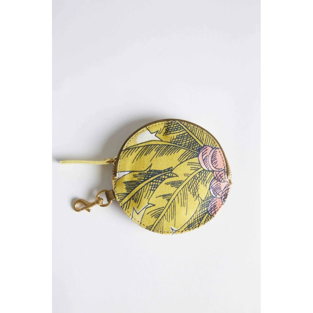 Porte-Monnaie Croisière de couleur Jaune. Corps 100% Coton, Doublure 100% Coton, Finition 100% Cuir