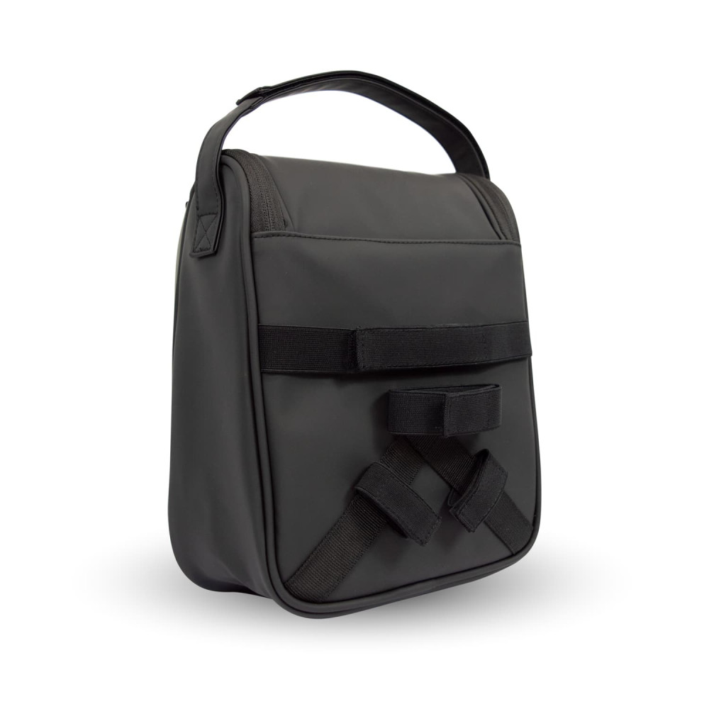 Fixer le Caddy Pack à votre chariot est une opération qui ne prend que quelques secondes. La poignée de transport est ingénieusement conçue pour servir de point de fixation principal. Pour garantir une stabilité totale, même sur les terrains les plus escarpés ou lors des secousses sur les chemins, des sangles élastiques supplémentaires sont positionnées à l'arrière du sac. Elles assurent un ajustement serré contre le châssis du chariot, empêchant tout balancement parasite pendant la marche.