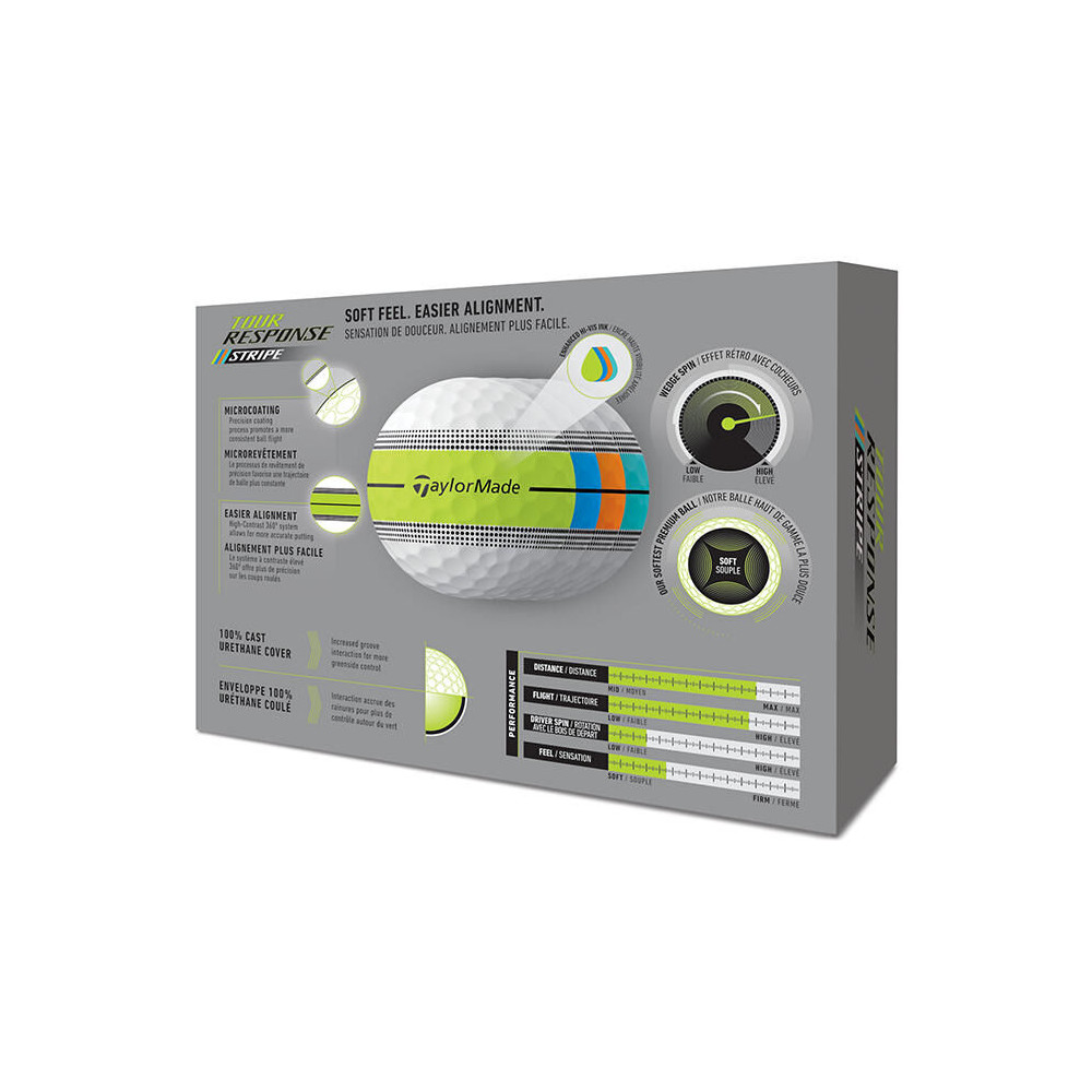 Les balles de golf TaylorMade Tour Response Neon Stripe sont spécialement conçues pour offrir une distance accrue et un contrôle précis.