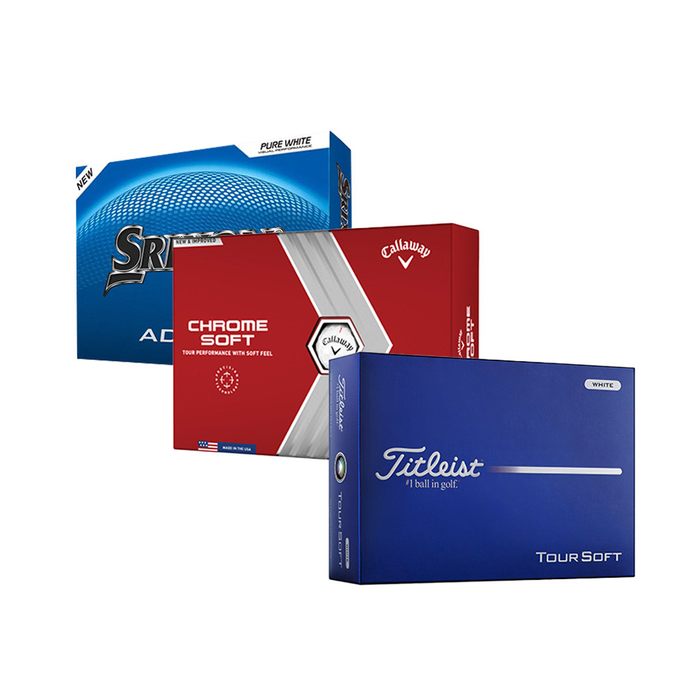 Testez les 3 grandes marques du golf en un seul pack. Callaway, Titleist et Srixon — 3 boîtes de 12 balles sélectionnées pour découvrir les meilleures sensations de jeu. -33% sur chaque boîte.