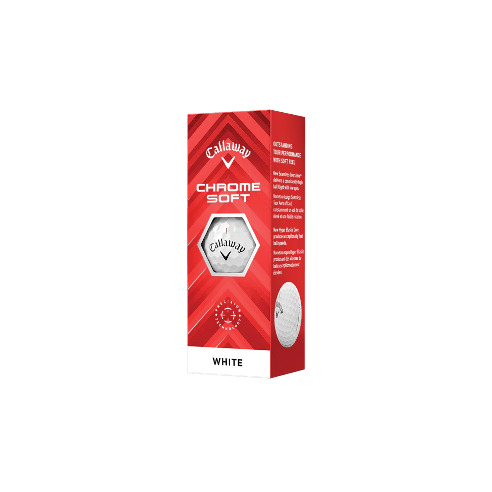 Le toucher signature Chrome Soft, la grande distance, le faible spin avec les fers et le contrôle élevé près du green font du Chrome Soft une balle de golf inégalée. Redéfinissez votre jeu avec l'excellence de Callaway.
