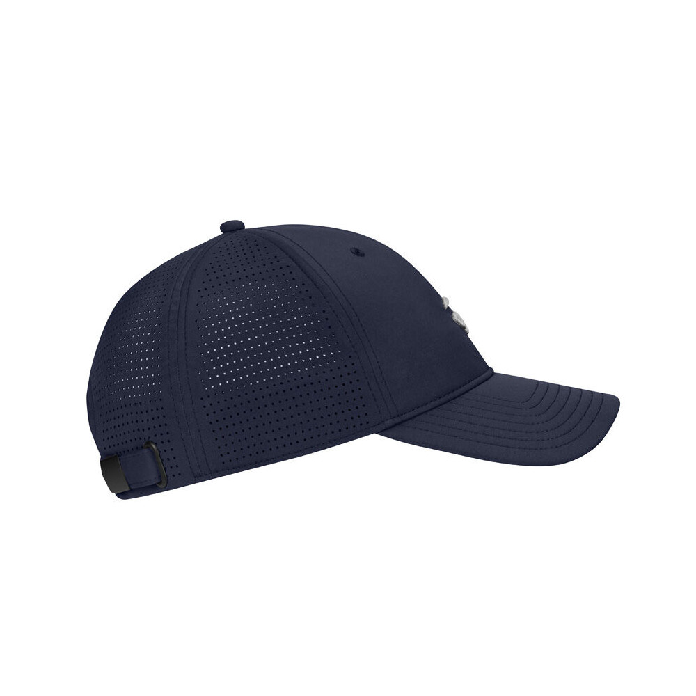 Pour assurer un maintien sécurisé malgré le vent ou les mouvements dynamiques du swing, la casquette est équipée d'une sangle arrière réglable. Le système de fermeture à clip en métal permet un ajustement précis et rapide, garantissant que le couvre-chef reste parfaitement en place. La qualité du mécanisme métallique souligne le positionnement premium du produit et assure une grande durabilité saison après saison.