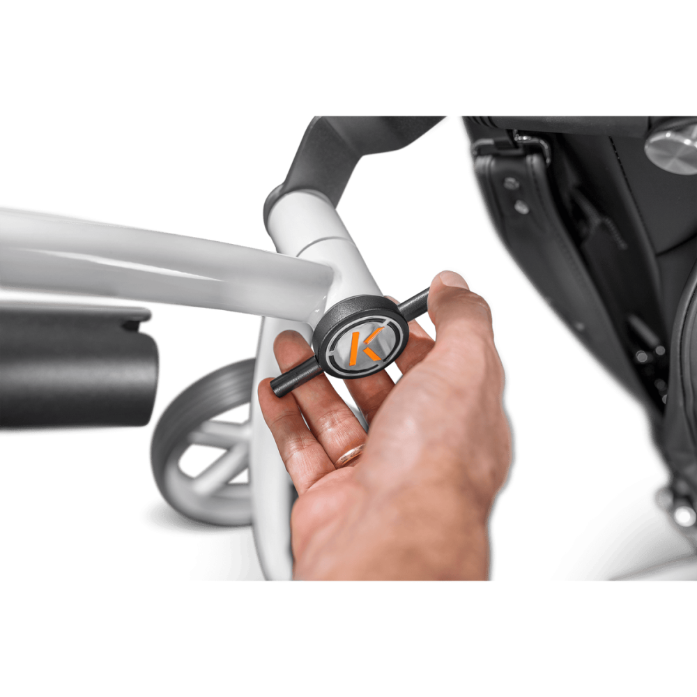 Le K1 Poignée Sport Cuir dispose d’une commande papillon pour ajuster facilement la hauteur de la poignée. Le système K-Comfort rend le pilotage intuitif grâce à un tableau de commande clair et accessible depuis la poignée. La fonction Speed-Memory mémorise votre vitesse préférée et l’auto-récupération d’énergie optimise l’autonomie de la batterie.