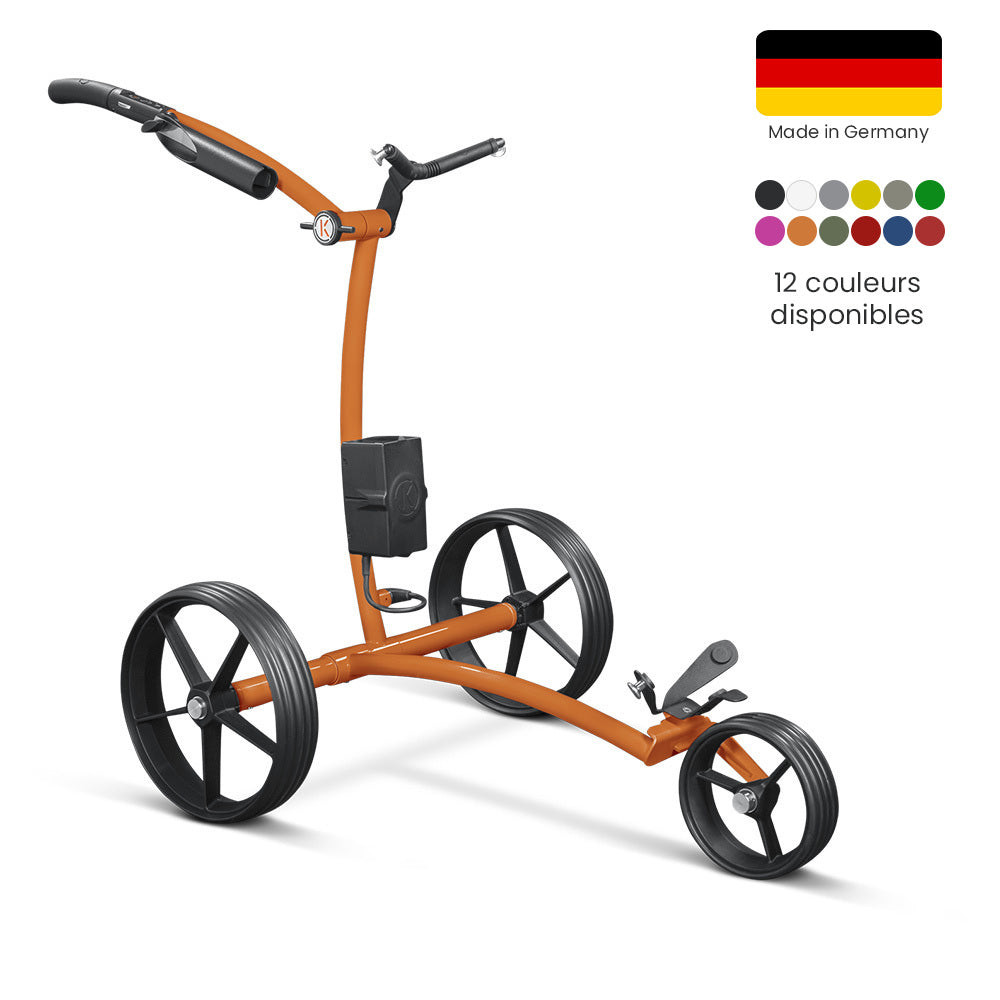Découvrez le Kiffe Golf K3, un chariot électrique haut de gamme alliant puissance, contrôle et design sportif. Fabriqué en Allemagne, il incarne le savoir-faire et l’innovation de Kiffe, le plus ancien fabricant d’e-trolleys du pays. Le K3 séduit par sa fiabilité, son confort d’utilisation et ses performances exceptionnelles sur tous types de parcours.