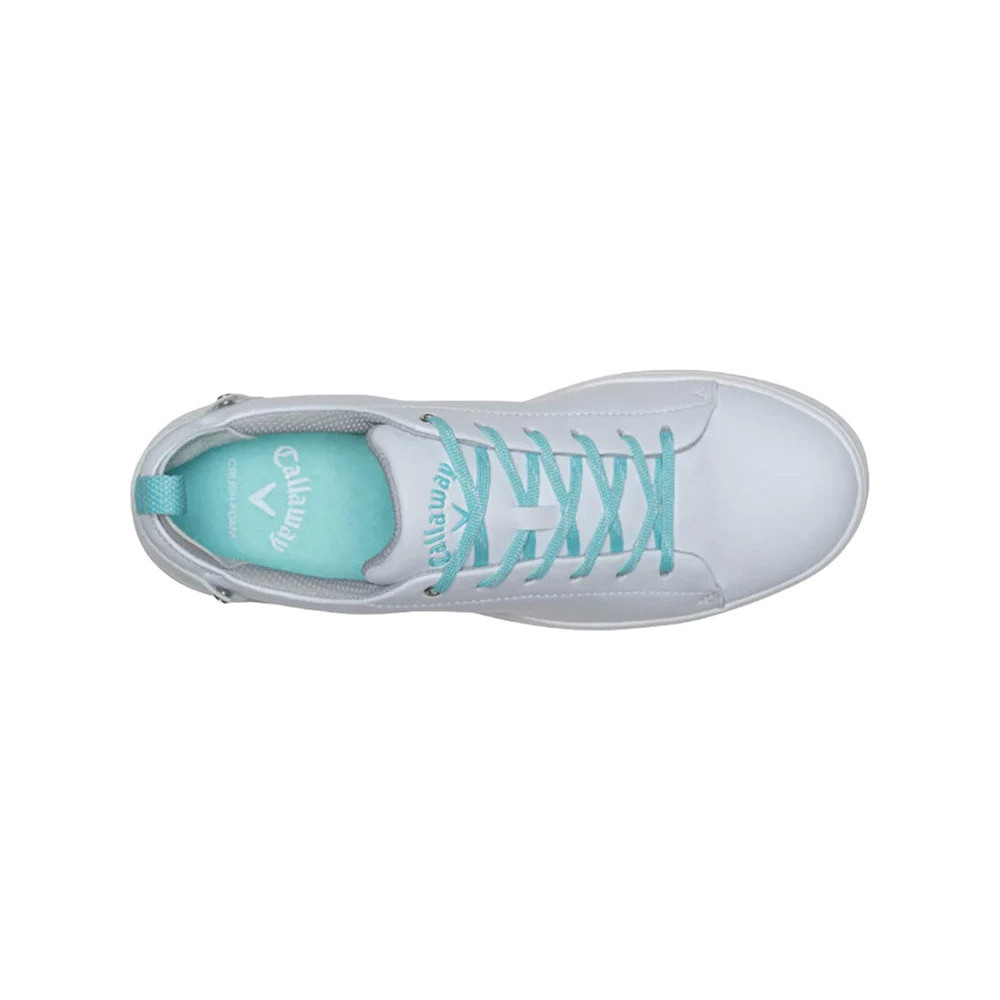 La chaussure de golf pour femme Callaway Lady Laguna est conçue avec une tige en cuir pleine fleur souple et agréable au toucher. Elle est équipée de la technologie imperméable Opti-Dri pour garder vos pieds au sec par temps de rosée matinale ou de pluie. La doublure en maille Opti-Vent permet une bonne ventilation et une régulation de la chaleur, tandis que le système de laçage Gibson assure un ajustement confortable.