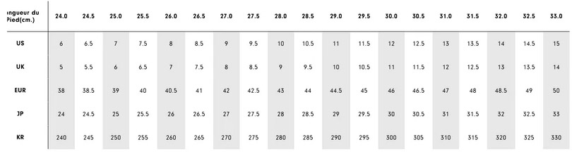 Les largeurs de ce modèle sont en taille Standard (M) selon disponibilités.