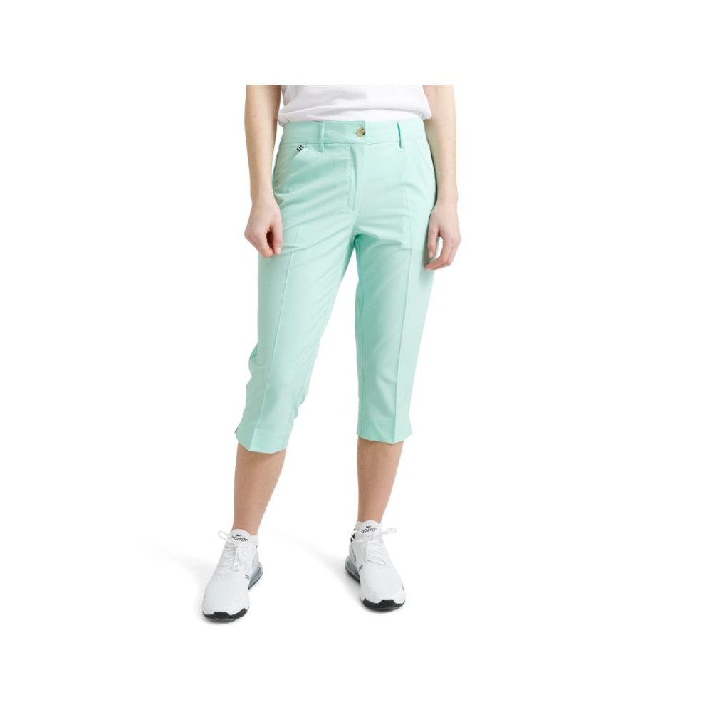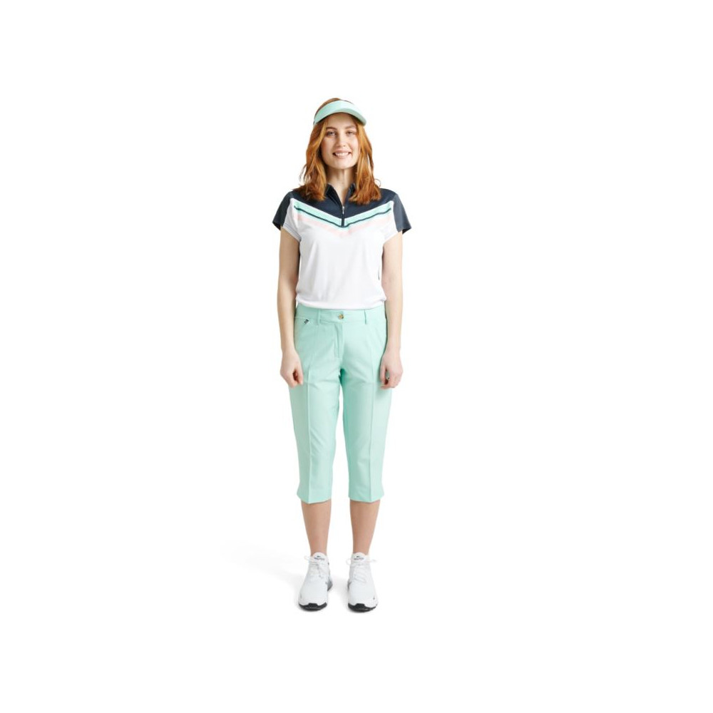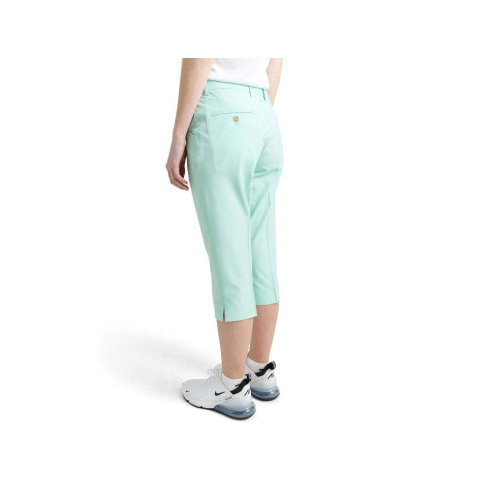 Le bermuda Kildare de la marque Abacus allie élégance et performance grâce à sa coupe capri mi-haute qui met en valeur la silhouette tout en offrant un confort optimal. Sa teinte vert menthe apporte une touche de fraîcheur et se marie parfaitement avec des couleurs classiques comme le bleu marine, le noir ou le blanc.