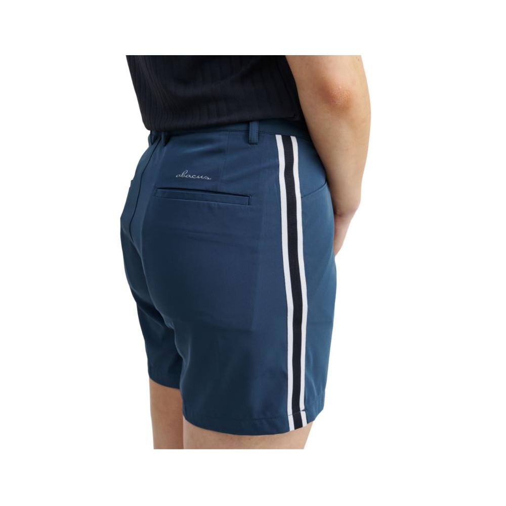 Le short Brook Stripe de la marque Abacus se distingue par son design moderne et ses bandes contrastées bleu et blanc le long des côtés. Sa coupe mi-haute assure un ajustement confortable et flatteur, parfait pour les journées sur le parcours comme pour un usage quotidien.