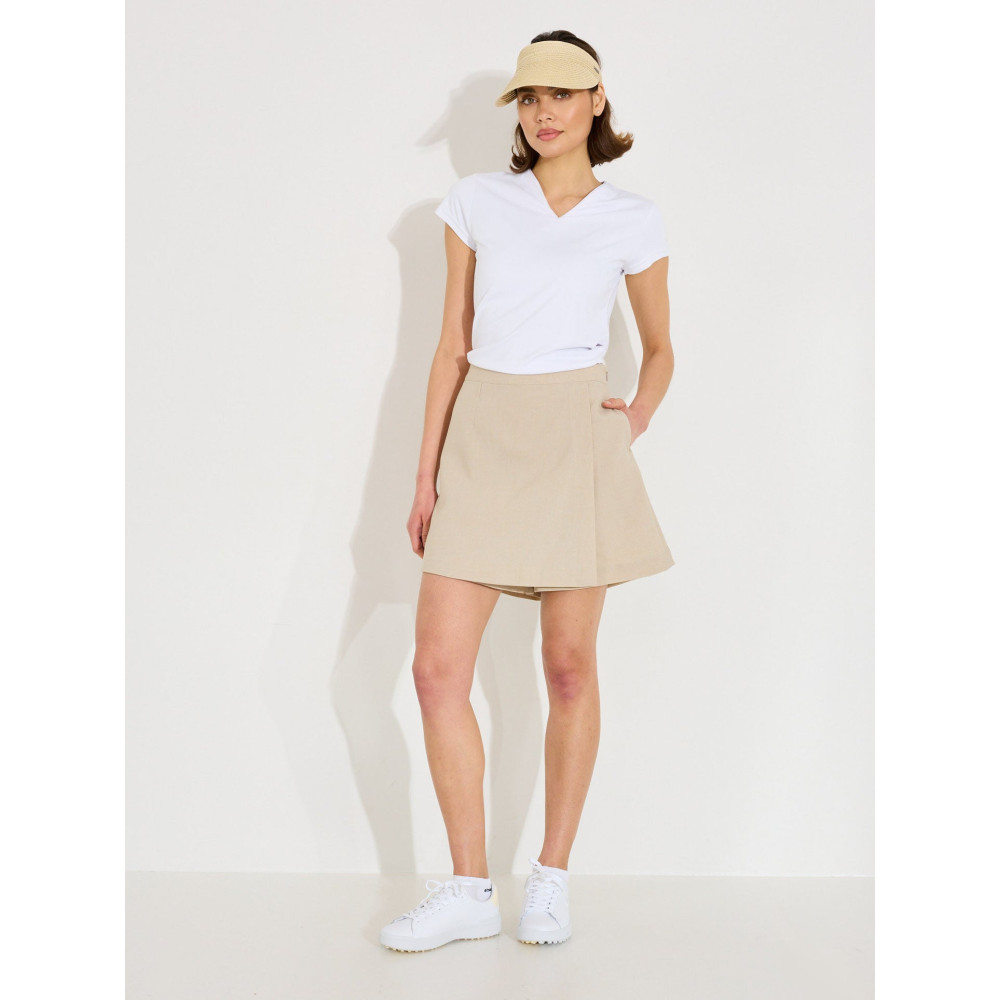 La jupe-short Fortrose de la marque suédoise Abacus est la pièce idéale pour les golfeuses qui recherchent un look sophistiqué sans sacrifier la technicité sportive. Conçue pour les journées d'été ensoleillées, elle se distingue par son aspect textile imitant parfaitement le lin, tout en offrant les avantages d'un vêtement de sport moderne. Ce modèle hybride a été pensé pour vous accompagner avec naturel du fairway jusqu'au centre-ville, offrant une transition fluide entre votre passion pour le golf et vos activités citadines. Avec la Fortrose, Abacus signe un vêtement au design minimaliste qui ne fait aucun compromis sur le style ou la fonctionnalité.