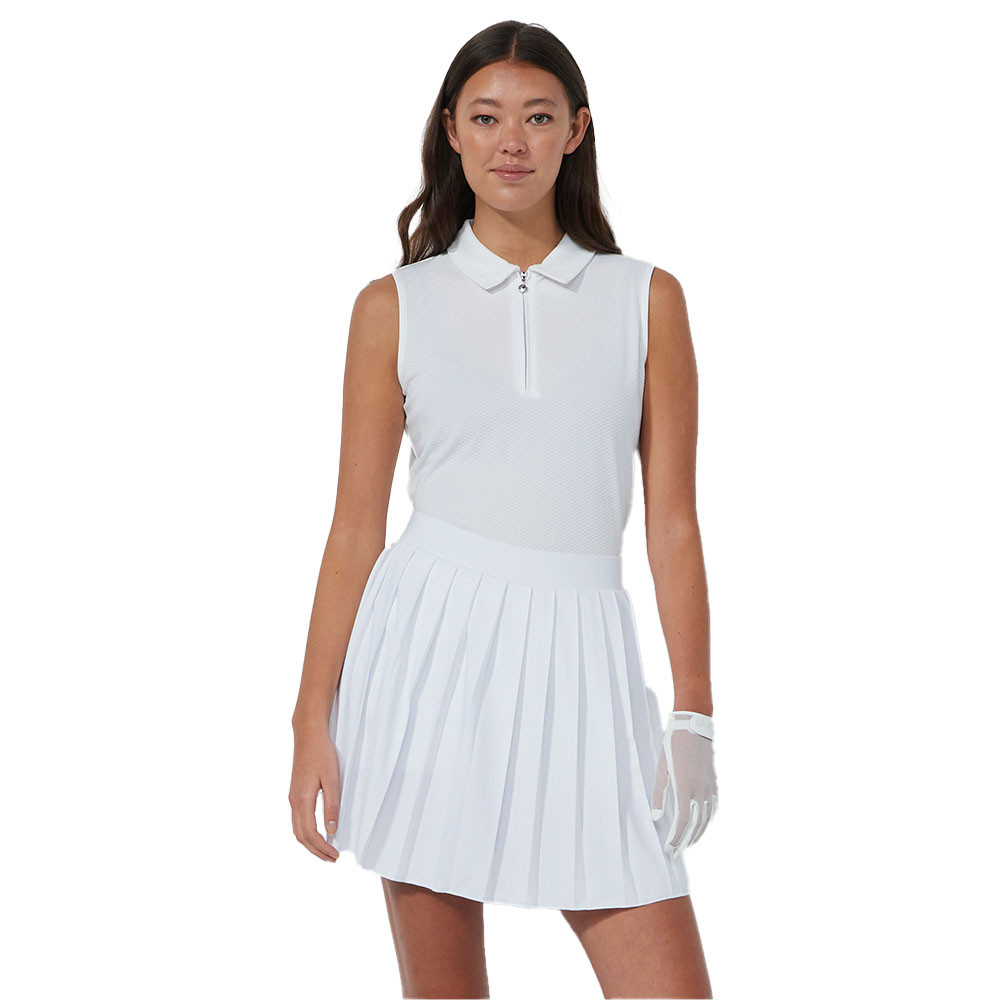 Le design plissé apporte une touche dynamique et sportive à la jupe Pleated Daily Sports. En plus de son esthétique moderne, cette conception favorise l’aisance dans les déplacements et ajoute de la fluidité à chaque mouvement, que ce soit sur le fairway ou au club-house.