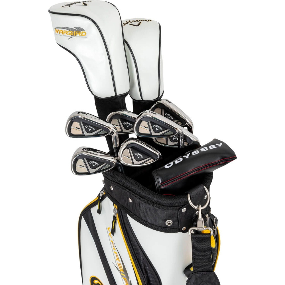 Le kit de golf Callaway Warbird 11 pièces est conçu pour offrir des distances exceptionnelles, une tolérance maximale et un confort de jeu optimal. Avec son ensemble de clubs parfaitement équilibré et son sac chariot élégant et fonctionnel, ce set convient aux golfeurs cherchant à améliorer leur jeu avec un équipement performant et accessible.