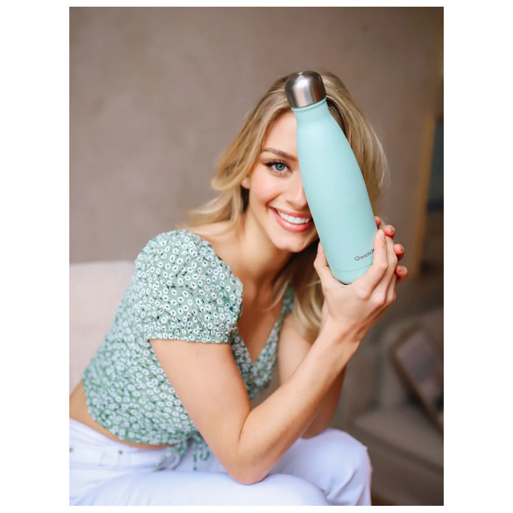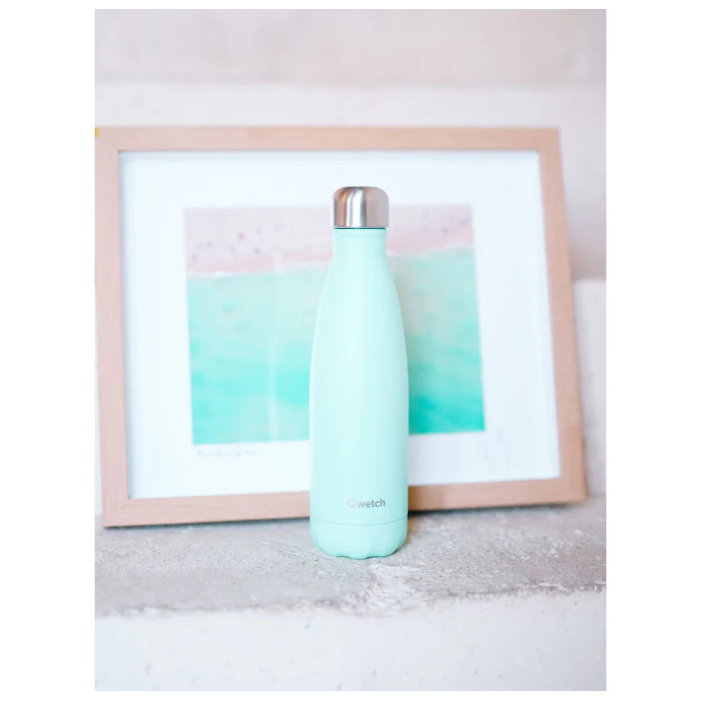 Avec la bouteille Isotherme Pastel Vert de QWETCH emportez votre boisson chaude ou froide dans tous vos déplacements. Cette bouteille maintiendra vos boissons chaudes pendant 12h et vos boissons froides pendant 24h.