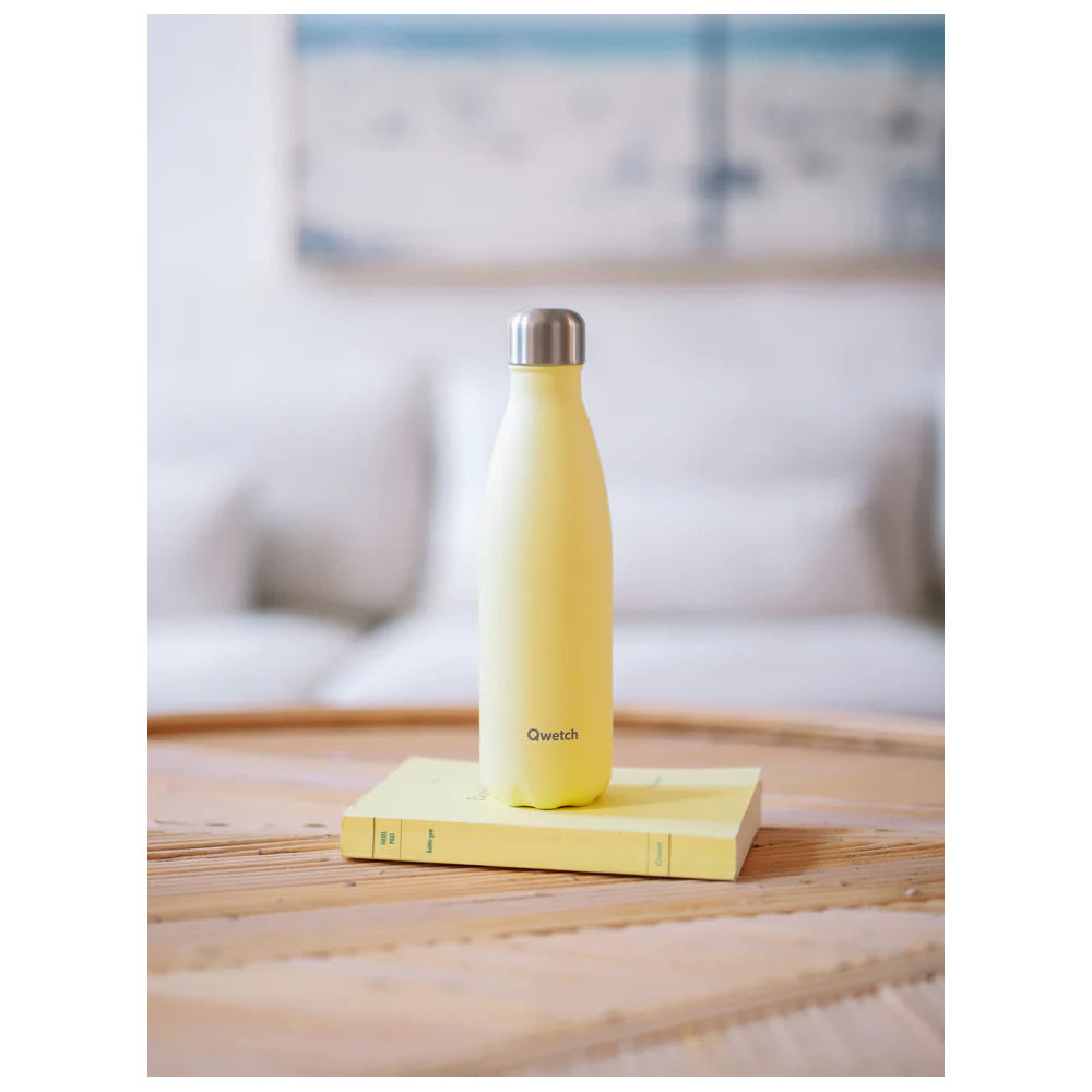 Avec la bouteille Isotherme Pastel Citron Givré de QWETCH emportez votre boisson chaude ou froide dans tous vos déplacements. Cette bouteille maintiendra vos boissons chaudes pendant 12h et vos boissons froides pendant 24h.