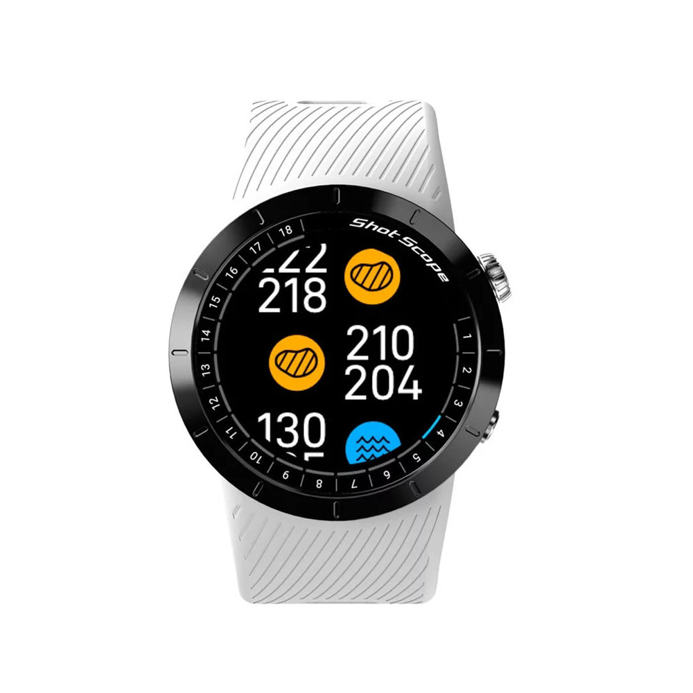 La montre GPS Shot Scope X5 est un compagnon indispensable pour les golfeurs désireux d'améliorer leur jeu. Dotée d'un grand écran tactile couleur de 1,2 pouce (43 mm) avec une lunette en céramique élégante et résistante aux rayures, elle offre une lecture claire et intuitive. Grâce à son verre minéral trempé et son affichage antireflet, les informations GPS restent visibles même en plein soleil.
