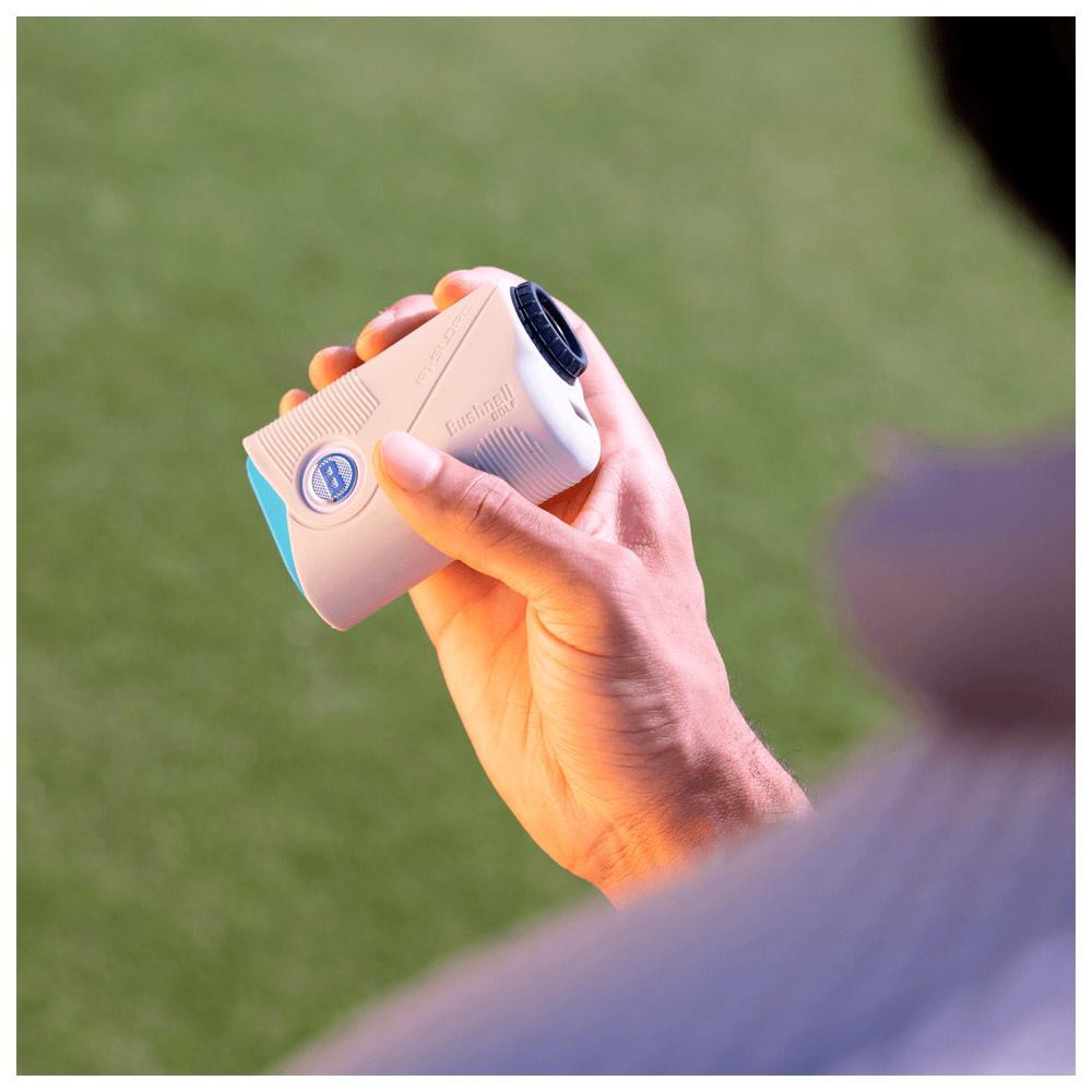 Le Bushnell A1 Slope intègre une batterie rechargeable via USB-C, pour une autonomie durable et sans tracas. Grâce à la technologie BITE Magnetic Skin, il se fixe facilement à une surface métallique, comme votre chariot ou votre voiturette, pour un accès rapide pendant la partie.