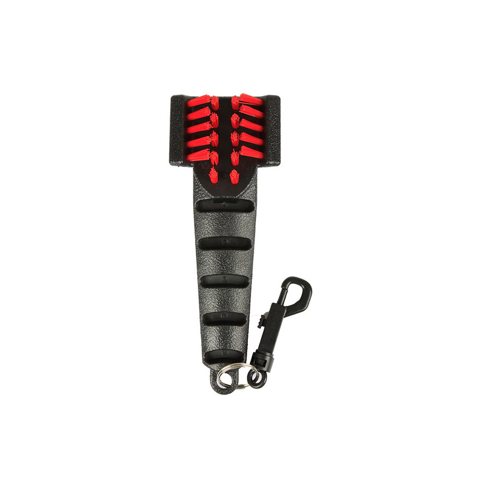 La brosse de nettoyage Ultimate SOFTSPIKES Black Widow est le seul outil conçu avec trois ensembles de poils inclinés qui nettoient simultanément le haut du crampon et sous les pieds du crampon, vous permettant de préserver la semelle de vos chaussures de golf.