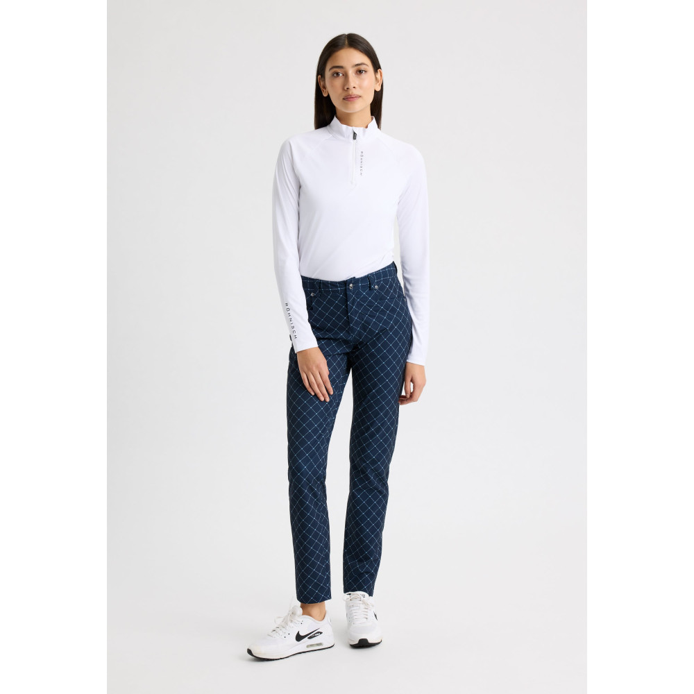 Le pantalon confort Chie est confectionné en polyester recyclé et en élasthanne doux, offrant une extensibilité flexible dans quatre directions. Il est également doté de fonctions de séchage rapide et d'infroissabilité. Sa coupe classique à jambes fines présente un entrejambe de 76 cm en taille 40.