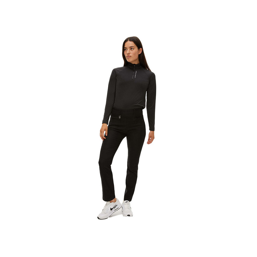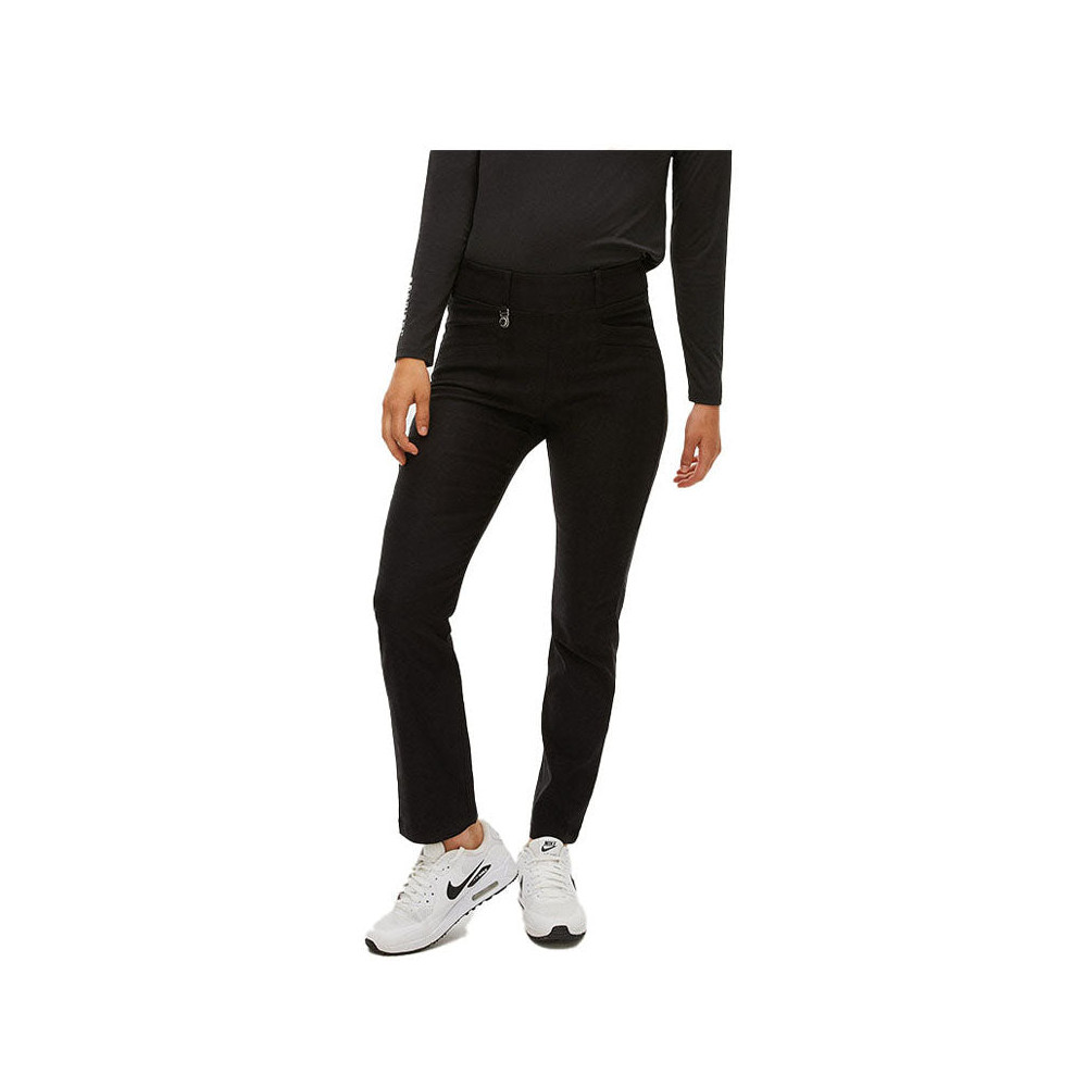 Le pantalon Embrace de Rohnisch est un modèle classique conçu dans un tissu extensible dans les deux sens, ferme et confort tout en épousant vos courbes avec son fini brillant. Sa conception facile à enfiler, avec un repère de balle à la taille, en fait un choix pratique pour le parcours de golf. Avec sa coupe droite et étroite, sa taille haute, et un entrejambe de 76 cm pour la taille 40, ce pantalon combine style et fonctionnalité. Disponible en noir et bleu marine, il s'associe facilement avec vos hauts préférés pour un look élégant et sportif.
