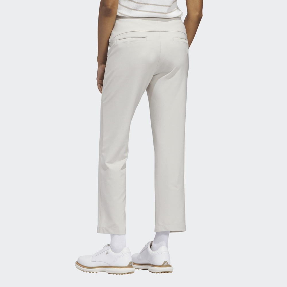 La coupe slim du pantalon Ultimate365+ dessine une silhouette élégante et sportive qui met en valeur la jambe. La longueur cheville, ou coupe 7/8, permet de dégager le bas du vêtement pour éviter tout frottement avec vos chaussures de golf et offre une allure résolument moderne. Le logo adidas Performance, discrètement placé sous la poche arrière droite, vient confirmer l'authenticité et la qualité d'un produit conçu pour le haut niveau.