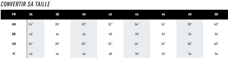 Vous pouvez accéder au guide des tailles en cliquant sur le ? dans le menu de choix des tailles.