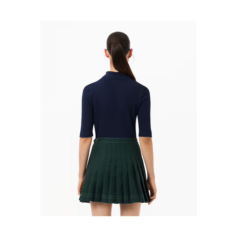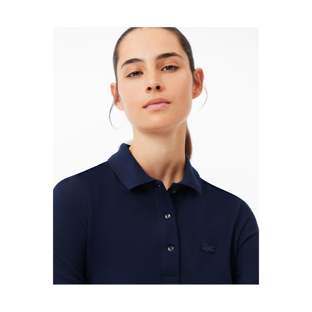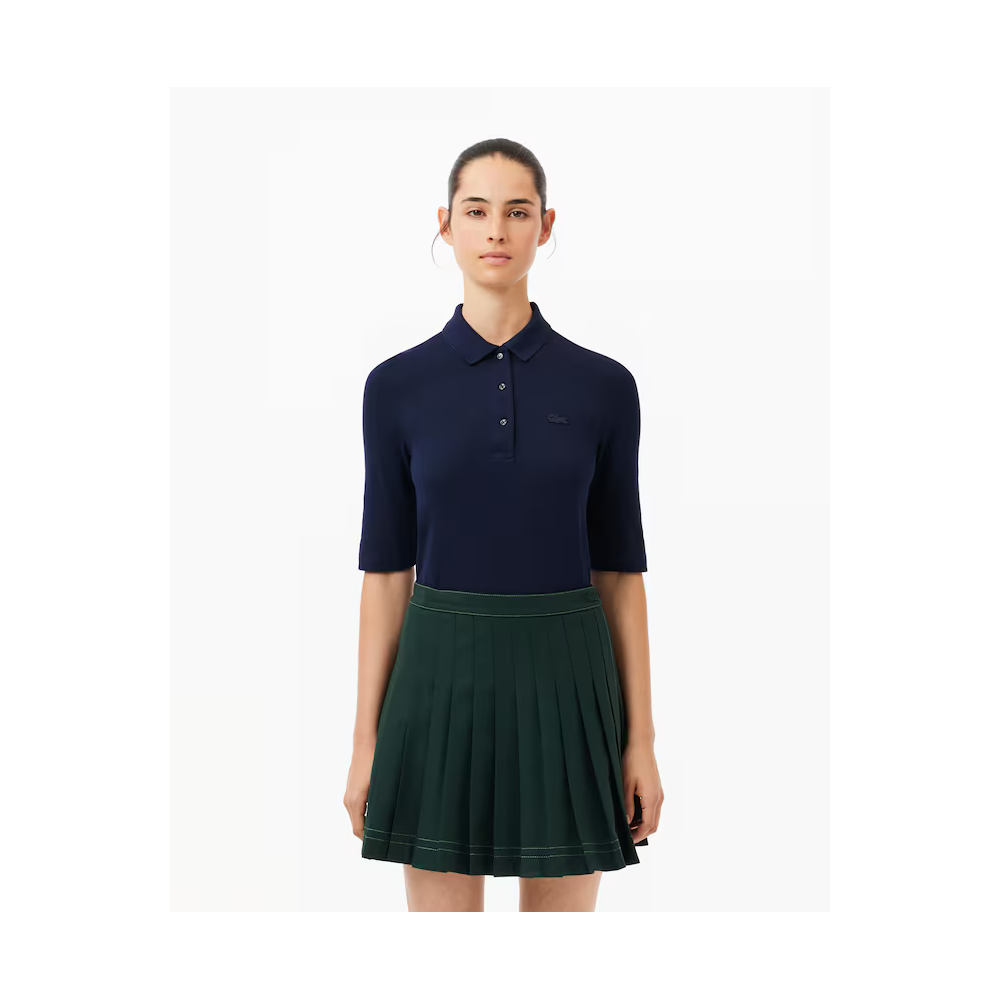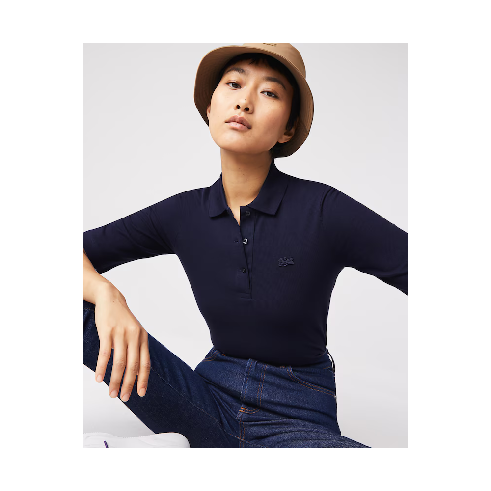 Créateur du polo en 1933, Lacoste réinvente son modèle emblématique dans une version féminine, à la fois moderne et minimaliste. Confectionné en Petit Piqué de coton, ce polo se distingue par ses manches trois-quarts et ses finitions raffinées, avec un crocodile ton sur ton sur la poitrine. Un indispensable au style épuré.