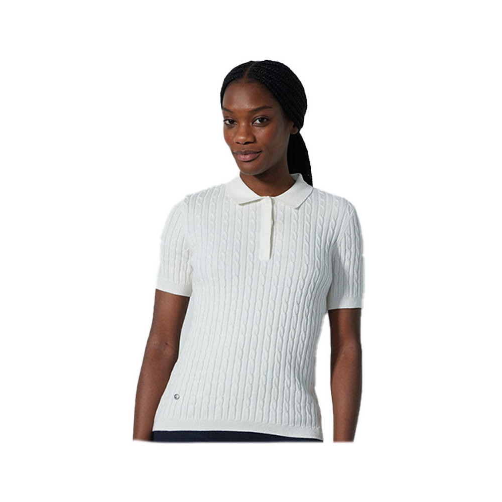 Le polo Madelene de la marque Daily Sports est une pièce élégante qui allie sophistication et confort. Confectionné dans un luxueux mélange de coton et de cachemire, il offre une douceur exceptionnelle et une chaleur légère, idéale pour les journées plus fraîches. Son design en maille féminine, avec un col plat et une patte de boutonnage à boutons cachés, apporte une touche de raffinement aussi bien sur le parcours qu’au quotidien.