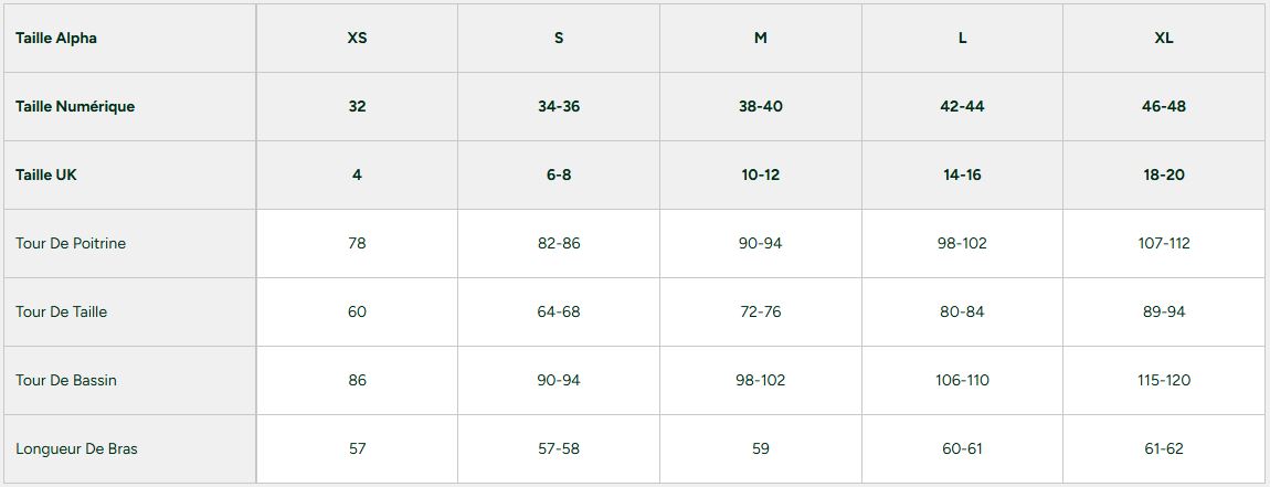 Tailles indiquées FR/Unisex
