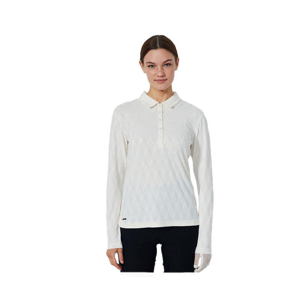 Le polo manches longues Jacquard de Daily Sports associe élégance et technicité. Confectionné en jersey structuré, il présente une coupe légèrement évasée avec de discrètes fentes latérales qui ajoutent fluidité et féminité à votre tenue.