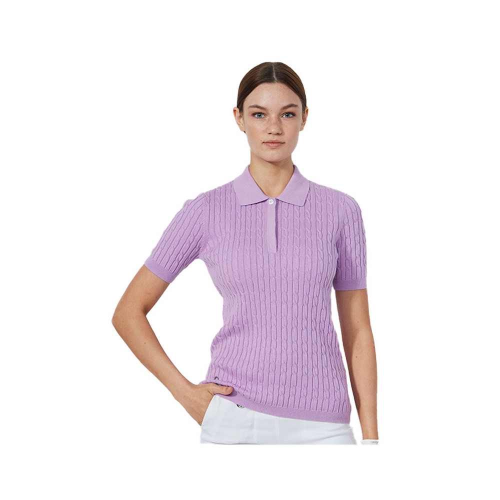 Le polo Madelene de la marque Daily Sports est une pièce élégante qui allie sophistication et confort. Confectionné dans un luxueux mélange de coton et de cachemire, il offre une douceur exceptionnelle et une chaleur légère, idéale pour les journées plus fraîches. Son design en maille féminine, avec un col plat et une patte de boutonnage à boutons cachés, apporte une touche de raffinement aussi bien sur le parcours qu’au quotidien.