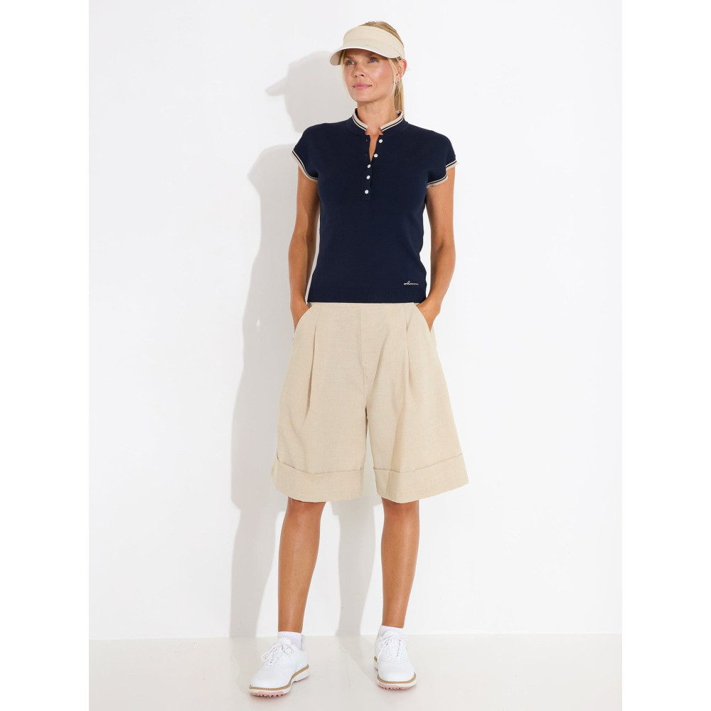 Le polo Niblick de la marque suédoise Abacus est la pièce idéale pour les golfeuses qui recherchent une transition fluide entre le parcours de golf et la vie citadine.