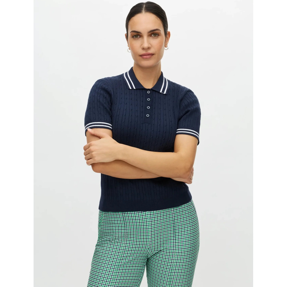 Contrairement aux polos synthétiques lisses, la texture en maille torsadée du Classic Cable offre une tenue supérieure et une meilleure régulation thermique naturelle. Le relief de la maille permet une circulation de l'air subtile, idéale pour maintenir un confort constant durant l'effort. Sa silhouette à manches courtes assure une liberté de mouvement totale, indispensable pour un swing fluide et sans contrainte.