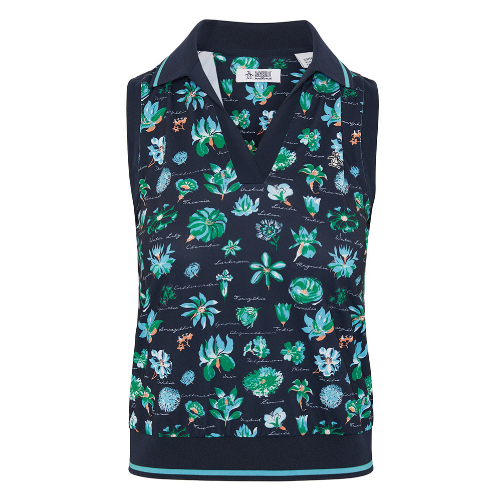 Le polo sans manches pour femme de la marque Original Penguin est la pièce idéale pour allier performance sportive et esthétique vibrante. Arborant un imprimé floral exclusif nommé Textbook, ce haut apporte une touche de gaieté et de modernité sur le parcours de golf. Sa coupe sans manches et son design bloussant au niveau de la taille offrent une silhouette élégante et décontractée, parfaite pour les parties estivales où le style et le confort thermique sont essentiels.