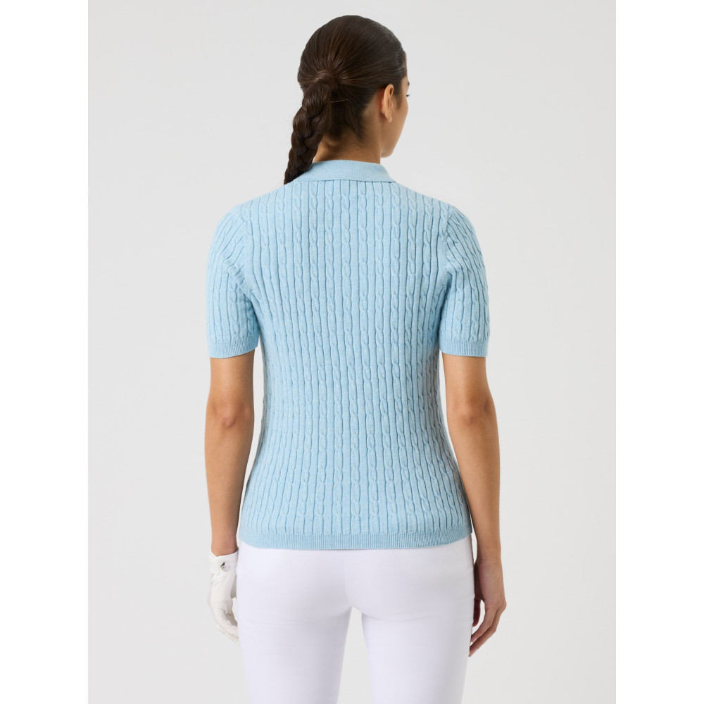 Le polo Madelene de la marque Daily Sports est une pièce élégante qui allie sophistication et confort. Confectionné dans un luxueux mélange de coton et de cachemire, il offre une douceur exceptionnelle et une chaleur légère, idéale pour les journées plus fraîches. Son design en maille féminine, avec un col plat et une patte de boutonnage à boutons cachés, apporte une touche de raffinement aussi bien sur le parcours qu’au quotidien.