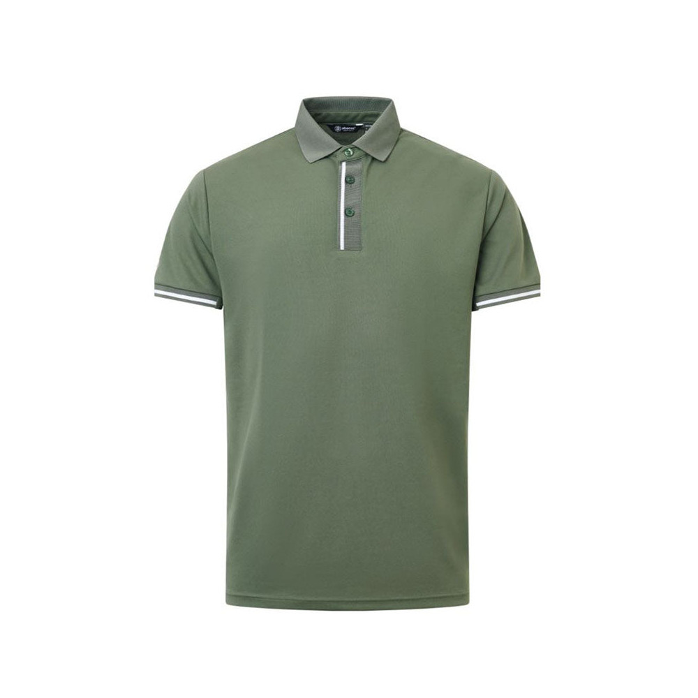 Couleur vert forêt avec bandes blanches contrastantes sur le col, la patte de boutonnage à trois boutons et les manches.
