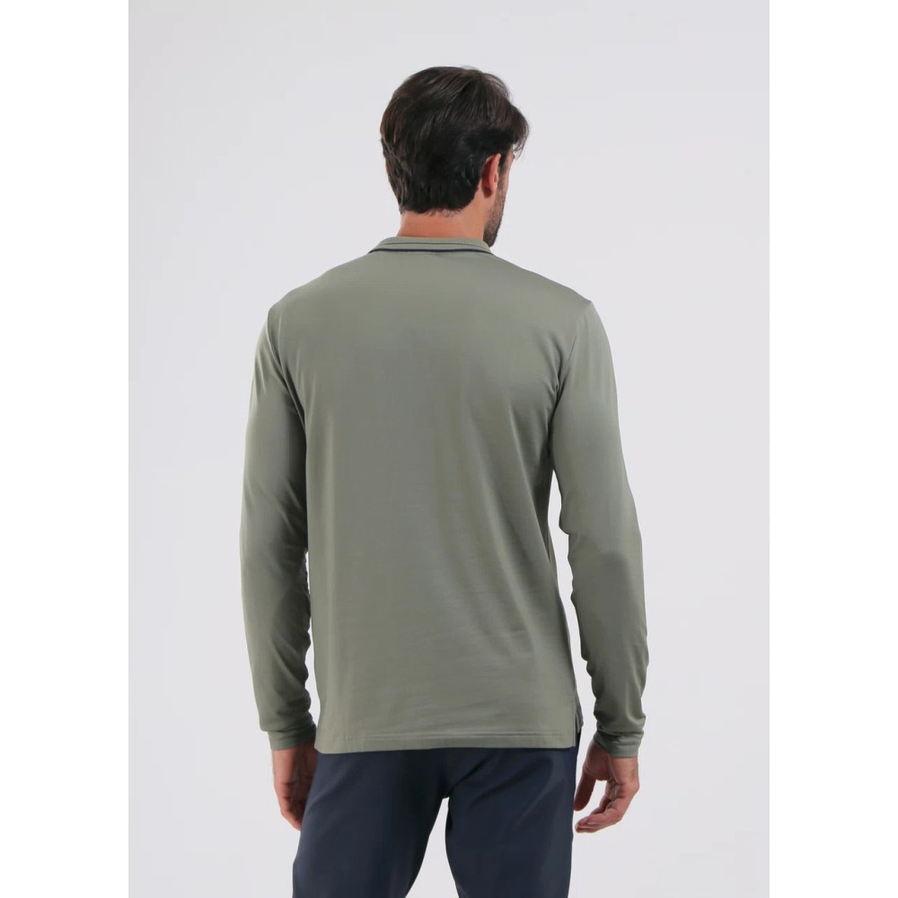 Le polo Alfabeto de Chervo est spécialement conçu pour les journées fraîches. Réalisé en jersey gratté avec un intérieur doux, il offre une chaleur agréable et un confort optimal sans alourdir la tenue. Son col en maille côtelée bicolore avec fines rayures contrastées et son logo brodé ton sur ton apportent une touche élégante et discrète à ce modèle intemporel.