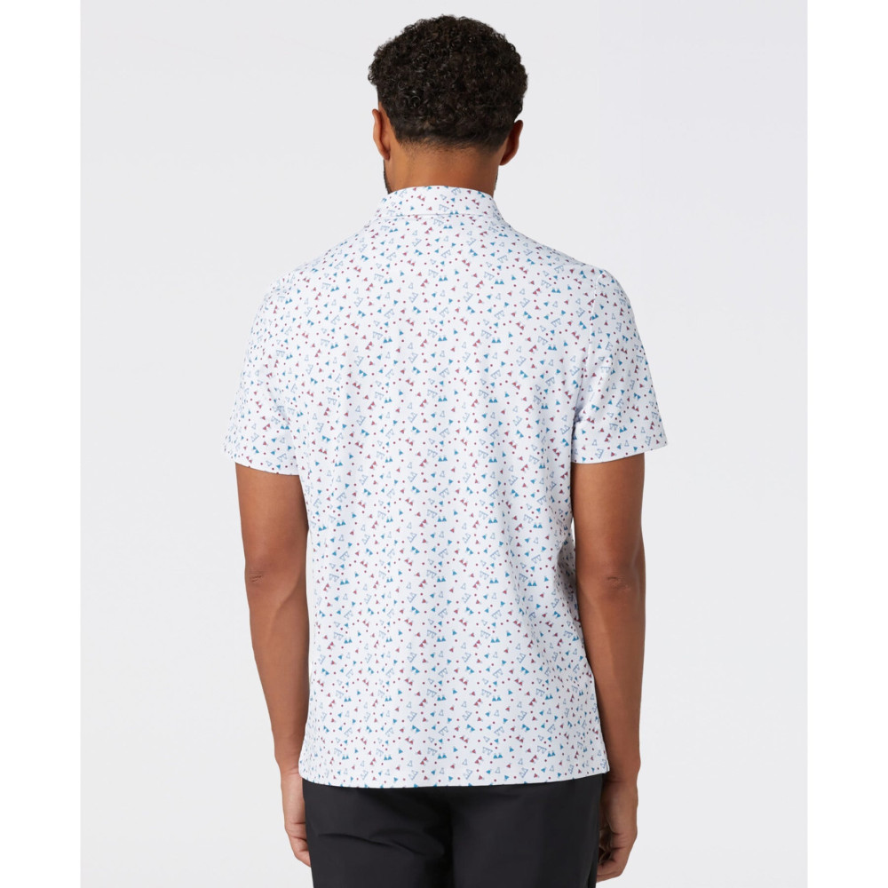 Le col polo classique, la patte de boutonnage à trois boutons et le logo Sticker Pete sur la poitrine ajoutent une touche raffinée à ce modèle plein de personnalité. Le motif Sake-Tini, subtil et original, apporte une note ludique sans compromettre le style sportif et chic typique de Penguin.