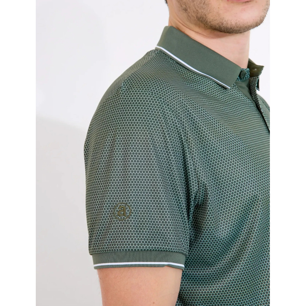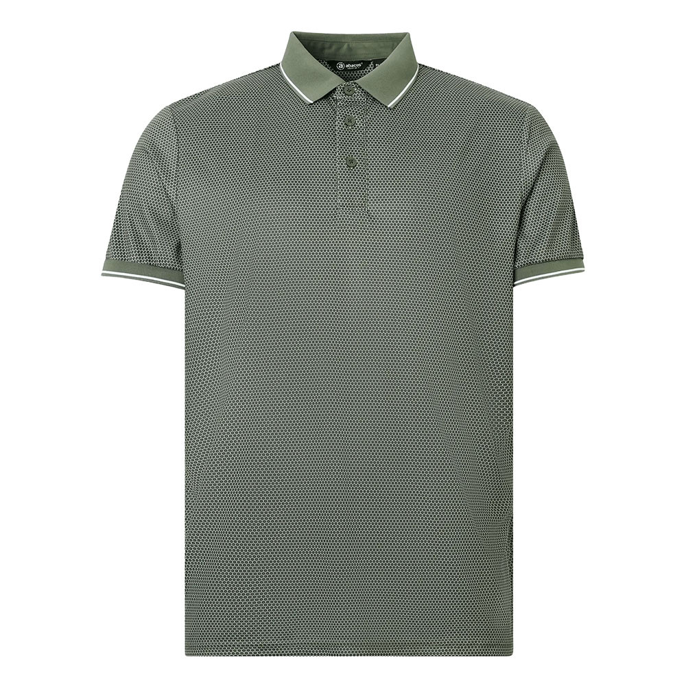 Ce polo est doté d'un col en maille côtelée classique associé à une patte de boutonnage à trois boutons, respectant les codes traditionnels du golf tout en y injectant une modernité subtile. Des rayures contrastées viennent souligner le col et les poignets, apportant une touche de dynamisme visuel. L'imprimé intégral (all-over print) donne du caractère à votre tenue, vous permettant de vous démarquer sur le fairway avec élégance.