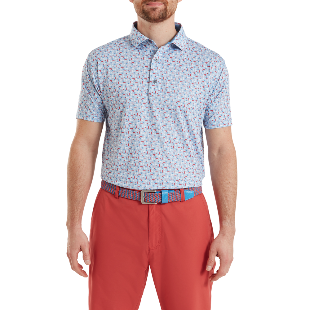 Le polo FootJoy à imprimé surf est conçu pour être aussi performant sur le terrain que facile à gérer au quotidien grâce à sa technologie Easy Care.