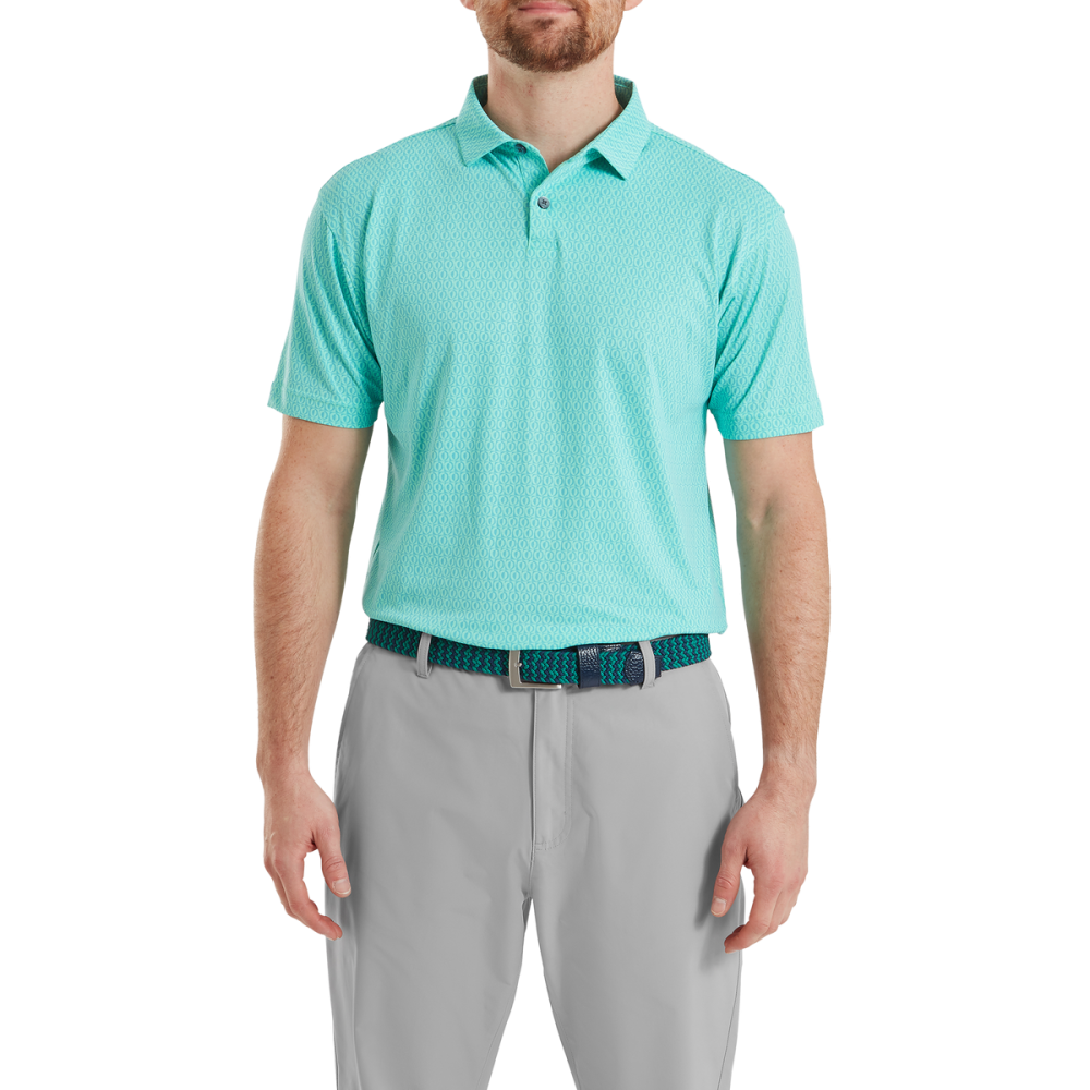Le polo piqué à motifs de la marque FootJoy est l'équipement idéal pour les golfeurs qui souhaitent affirmer leur style tout en bénéficiant des meilleures technologies de confort.