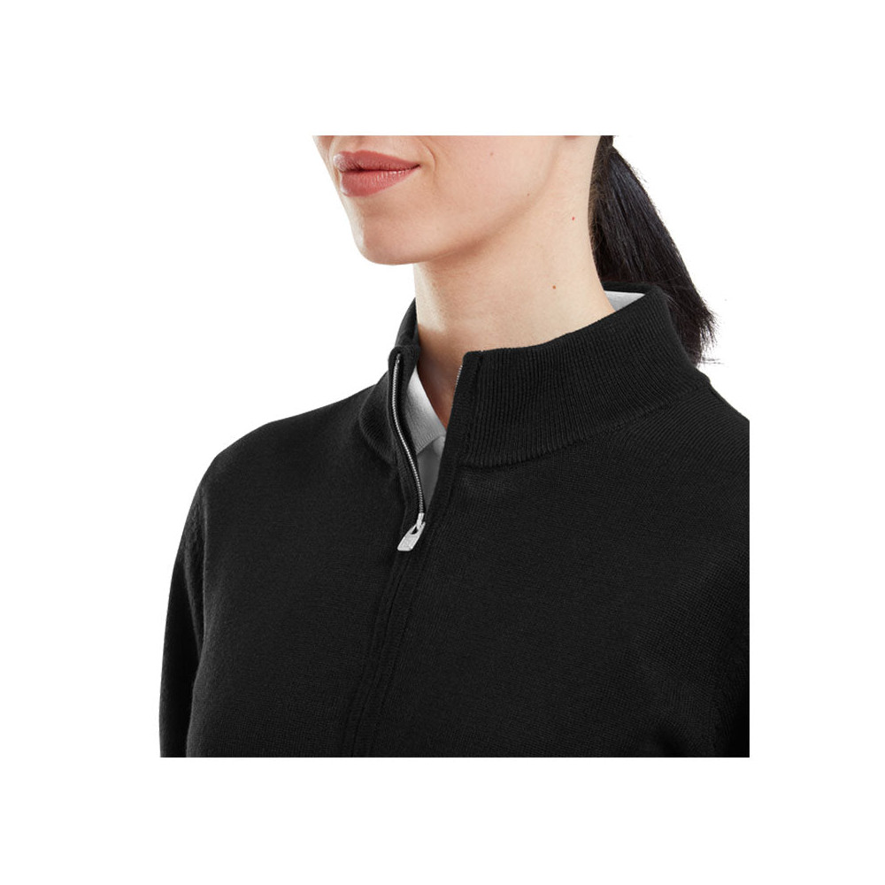 Le Pull Over Full-Zip Doublé Drirelease femme de FootJoy est conçu pour offrir une coupe ajustée et confortable grâce à ses poignets et ceinture en maille élastique.