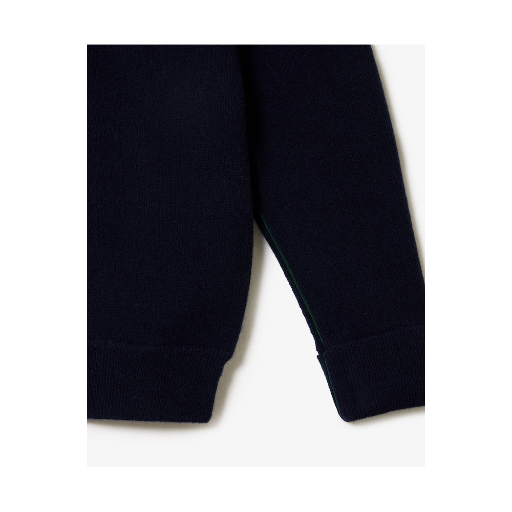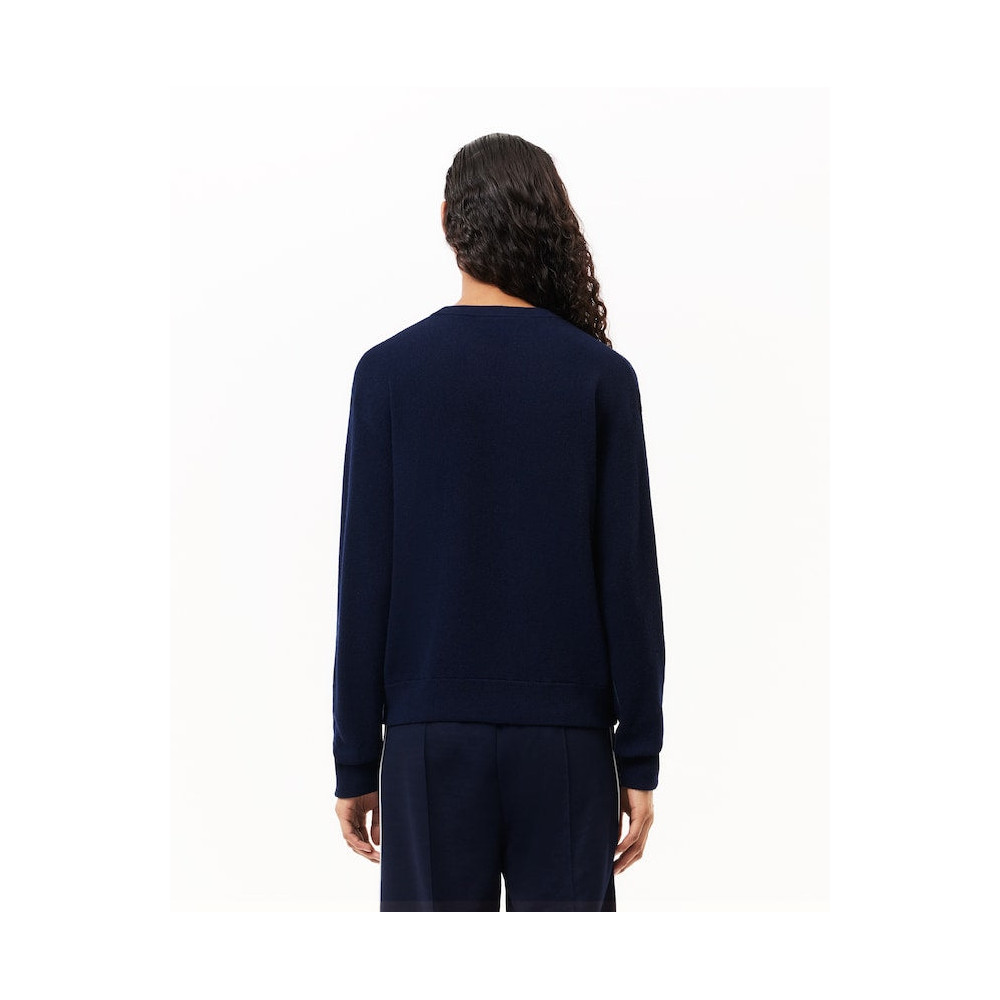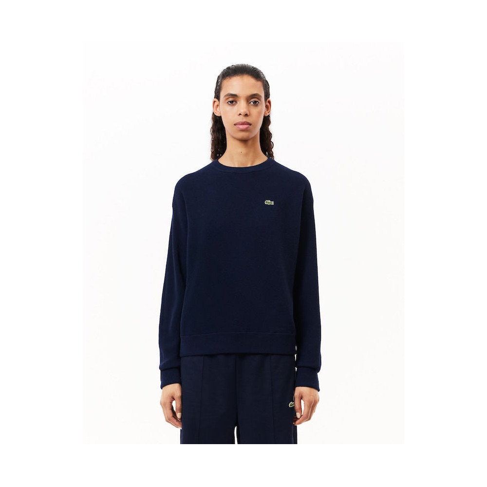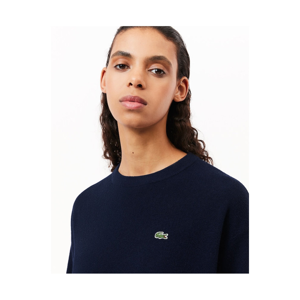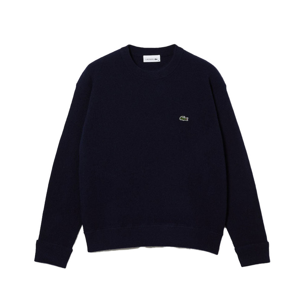 Le pull relaxed fit en laine cardée point mousse de Lacoste est un incontournable pour la saison hivernale.