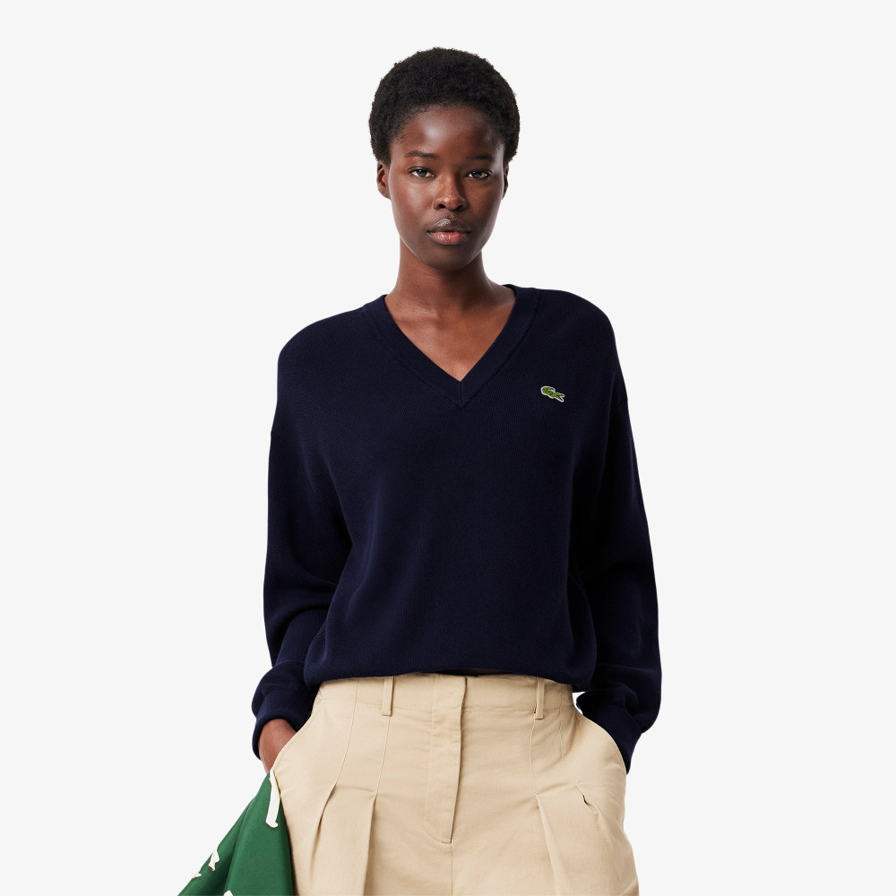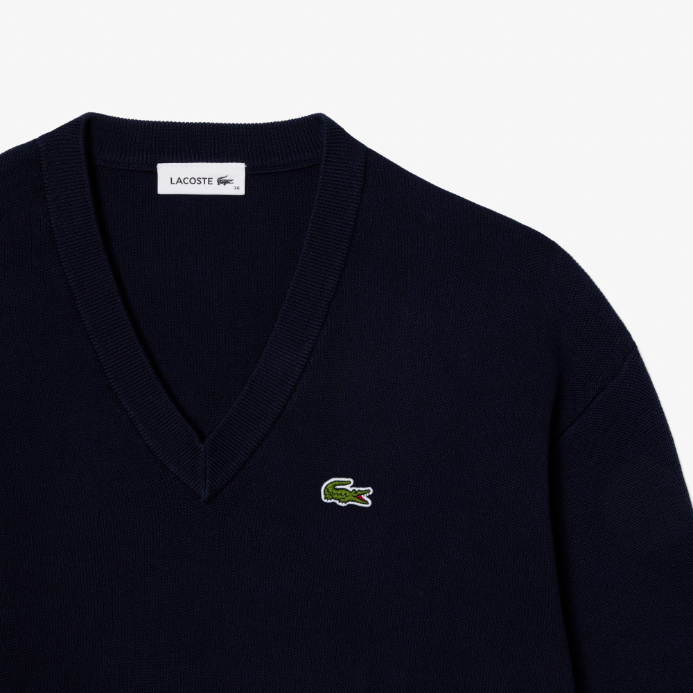 Alliant élégance intemporelle et confort absolu, le pull col V point mousse en coton de Lacoste est un incontournable pour une allure chic et décontractée.