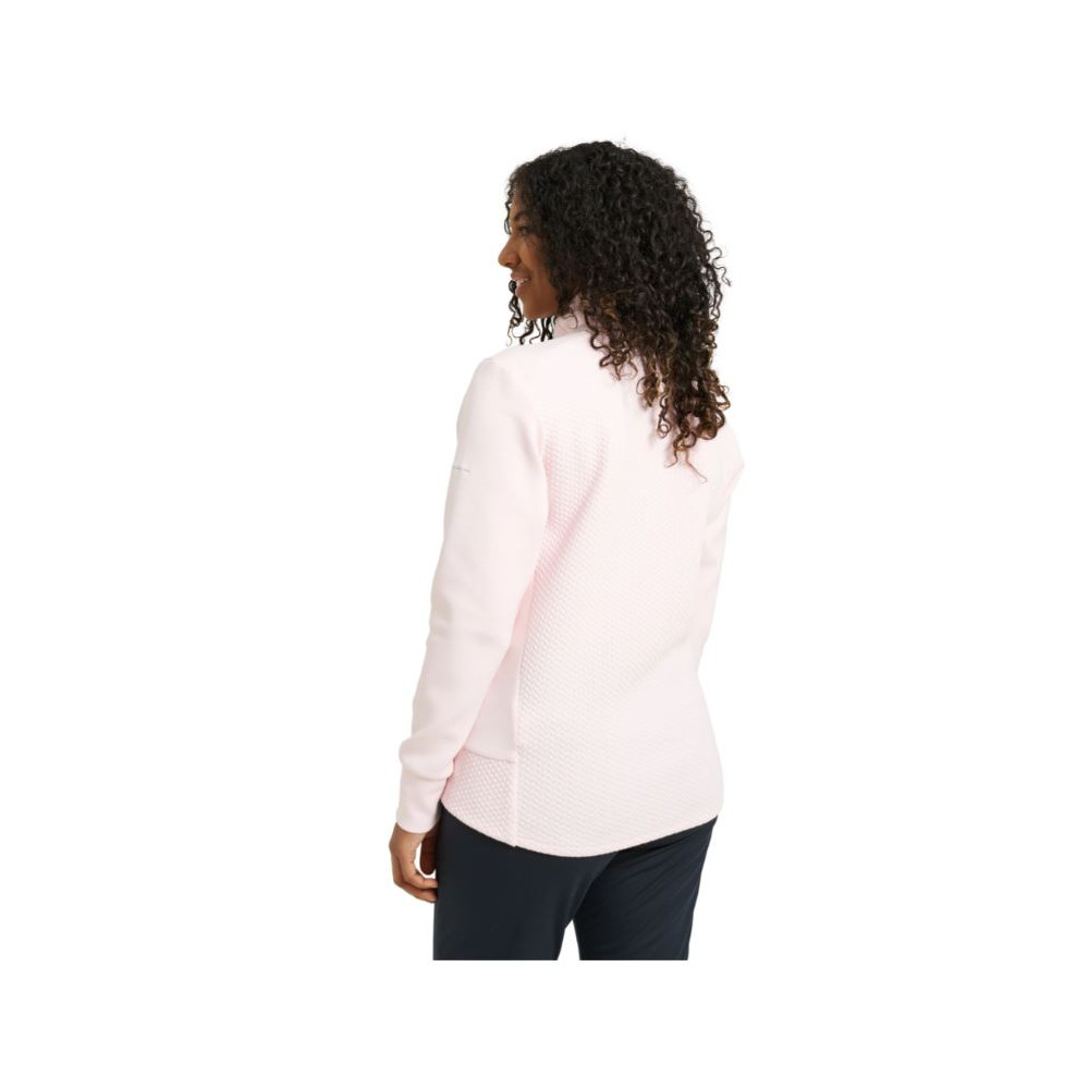 Le midlayer Carden Abacus se distingue par sa coupe féminine et sa longueur légèrement allongée, idéale pour rester confortable et couverte lors de vos mouvements sur le parcours. Conçu dans une polaire extensible ultra douce, il combine chaleur et souplesse pour vous accompagner aussi bien au golf que dans vos activités quotidiennes.