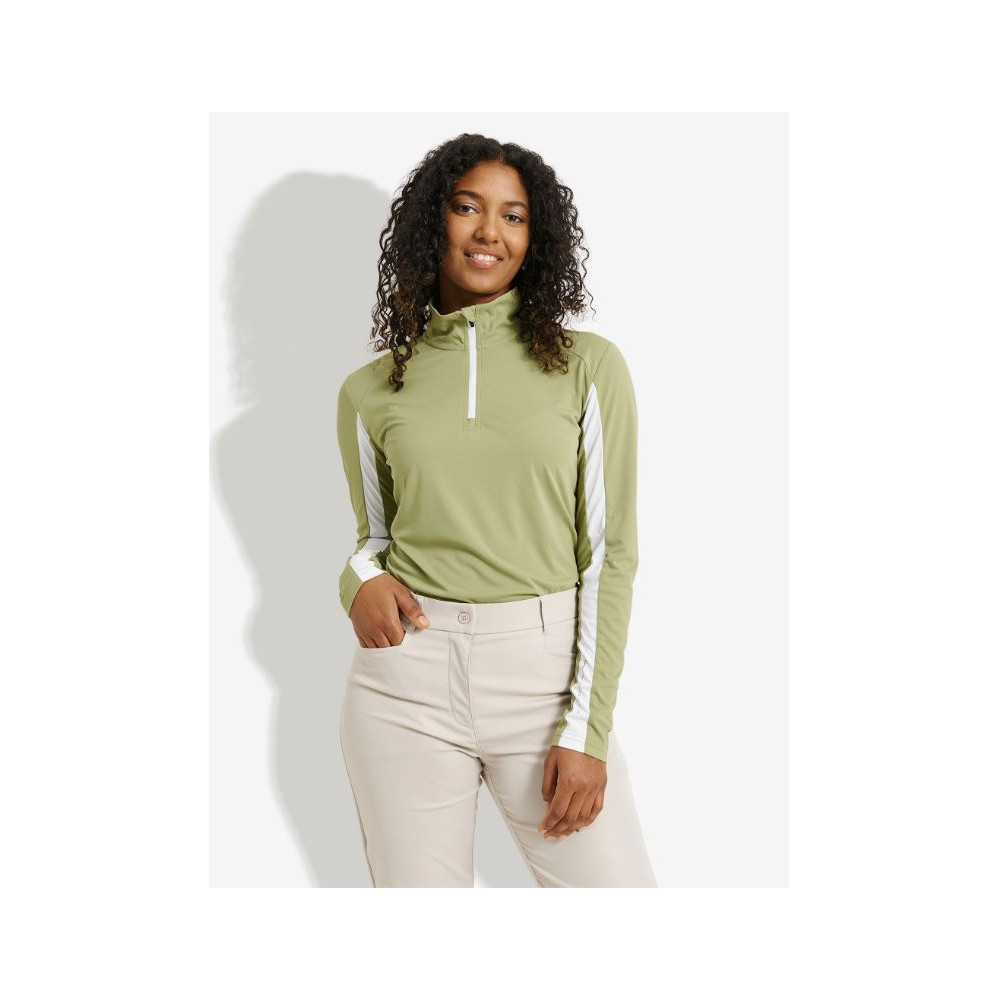 Doté des technologies DryCool et respirantes, ce pull régule l’humidité pour vous garder au sec, même lors des journées les plus chaudes. Son tissu stretch suit parfaitement vos mouvements, vous offrant une totale liberté de swing. Le col polo zippé permet d’ajuster l’aération selon vos besoins, tandis que la coupe allongée dans le dos évite toute ouverture entre le haut et le bas pendant le jeu.