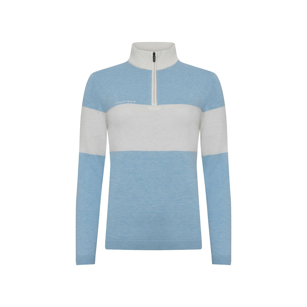 Le pull Kora Knitted pour femme de Rohnisch, avec demi-fermeture éclair, est fabriqué en laine mérinos certifiée RWS, en viscose certifiée FSC et en polyamide recyclé, garantissant un choix durable et écoresponsable. Ce tricot uni, agrémenté de logos brodés, offre une coupe régulière et est idéal pour les superpositions. Parfait pour créer un look preppy, que ce soit sur le parcours de golf ou pour un usage quotidien.