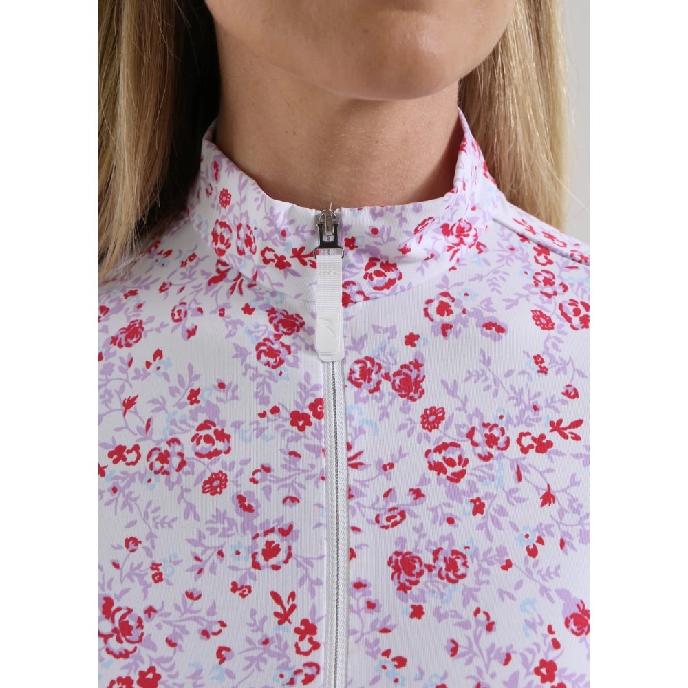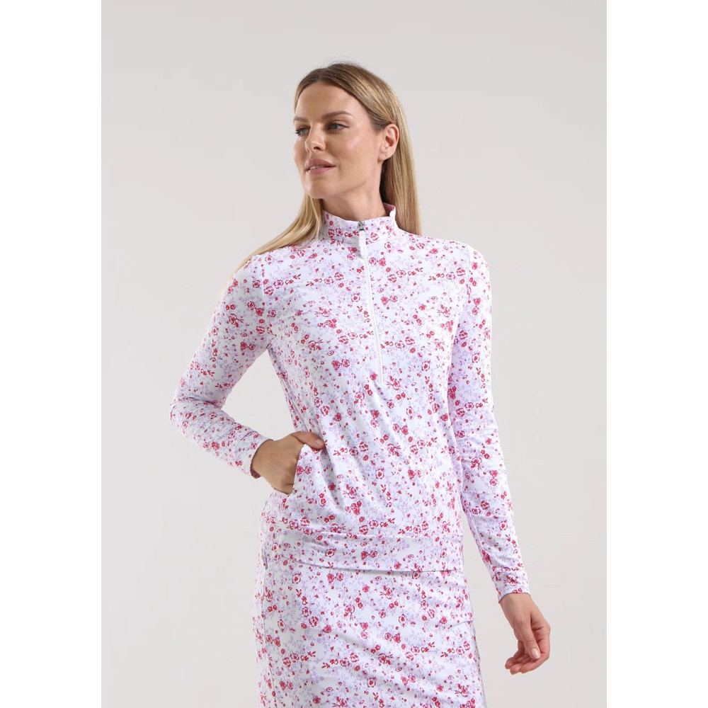 La fonctionnalité est au cœur du design du modèle Trisha. L'ouverture à demi-zip centrale permet de moduler l'aération selon les variations de température ou l'intensité de l'effort. Ce zip fluide apporte une touche de praticité indispensable pour une superposition facile (layering) sur un polo technique. Les finitions précises et la légèreté du jersey en font un vêtement peu encombrant, facile à glisser dans votre sac de golf pour parer à toute brise légère.